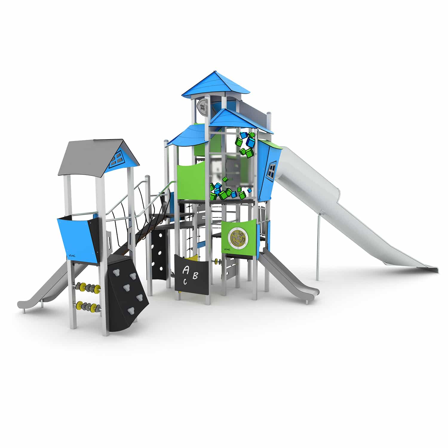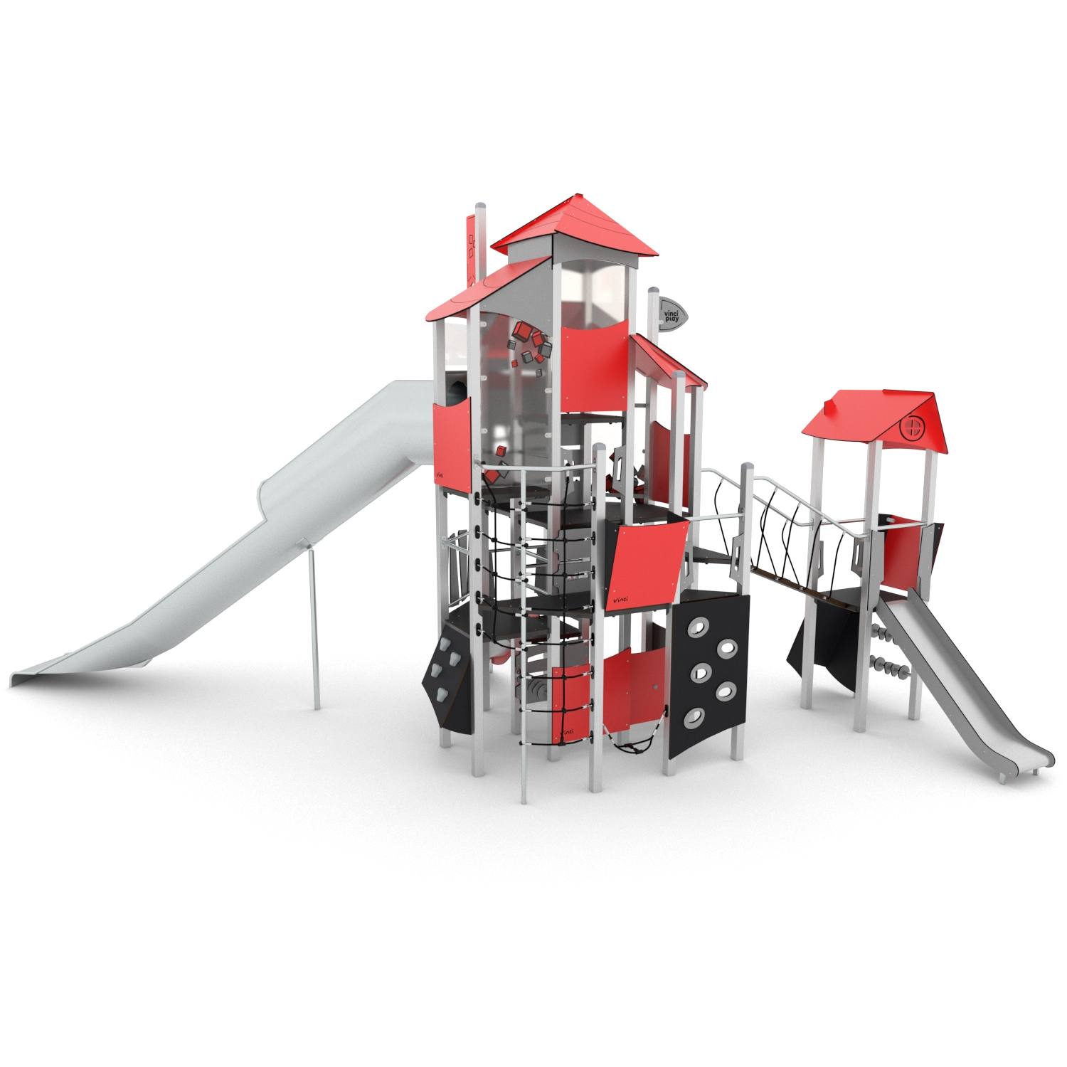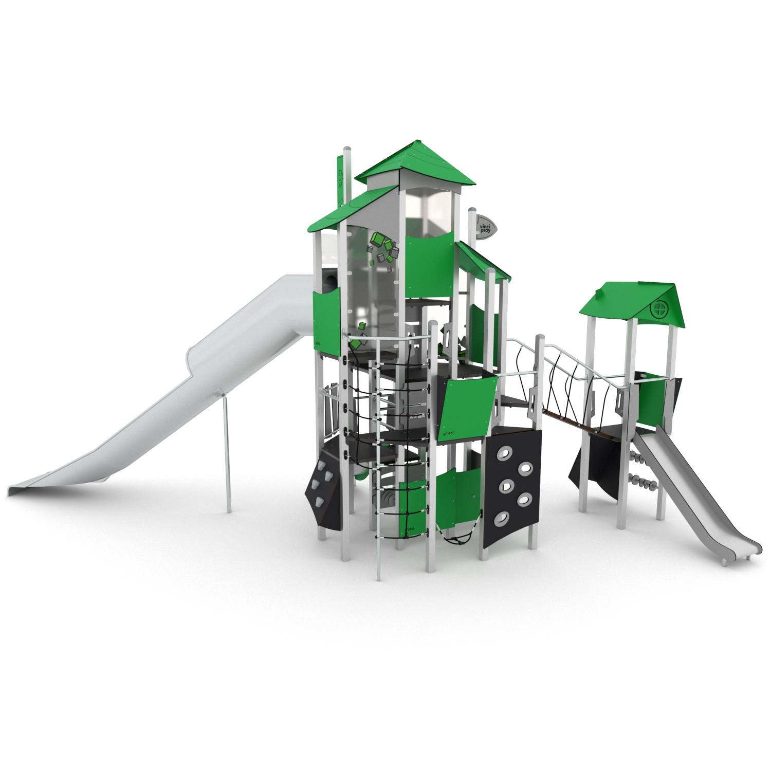 De STEEL+ serie biedt heel veel speelwaarde voor kinderen van alle leeftijden. Steel+ heeft een zeer fraai en onderscheidend design en is gemaakt van top kwaliteit materialen. Door toevoeging van verschillende manipulatieve elementen raak je nooit uitgespeeld. Met een toren tot wel 9.00 meter hoog kan er op verschillende niveaus worden gespeeld en is de RVS buisglijbaan een regelrechte hit!