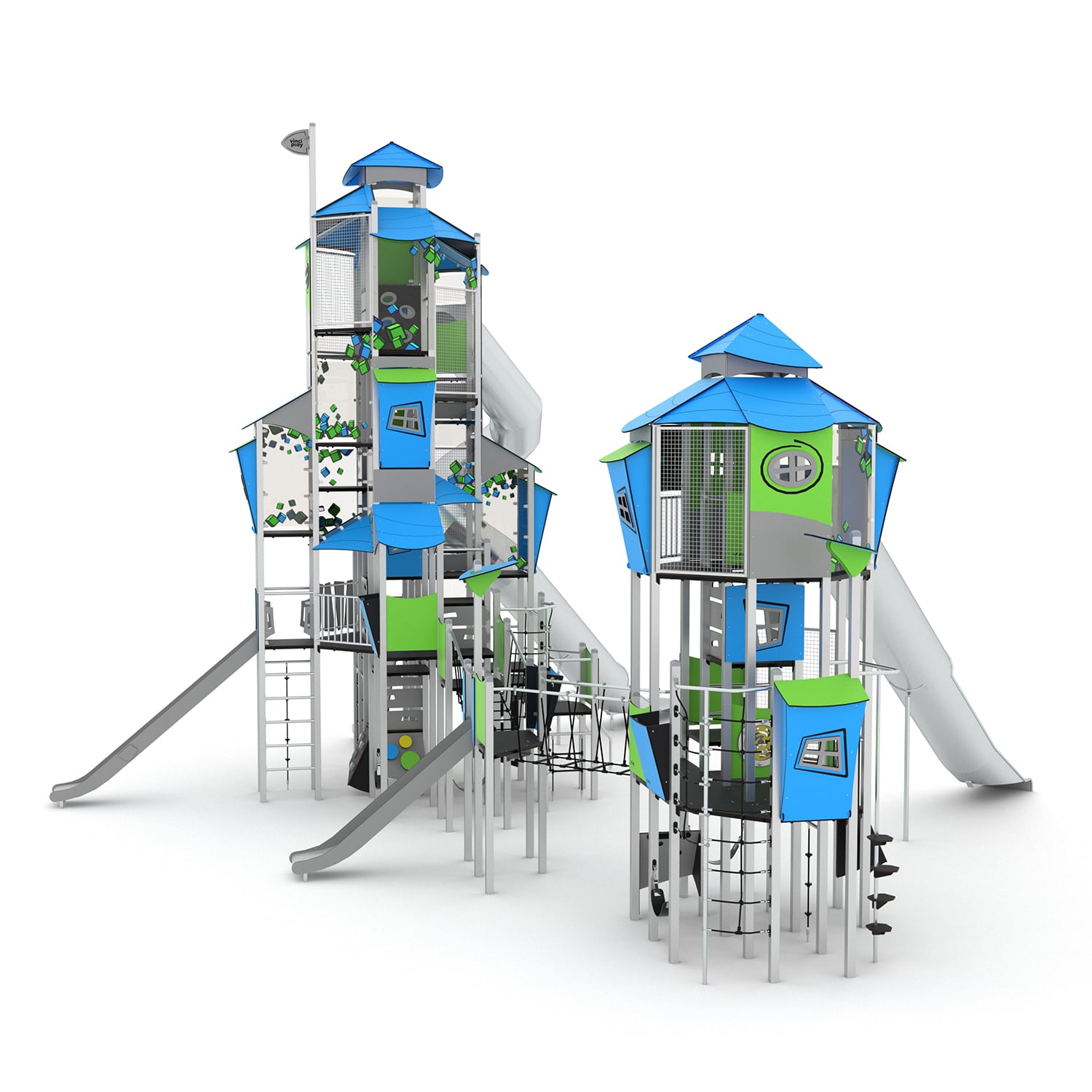 Maxi level speelcombinatie met bruggen en twee buisglijbanen