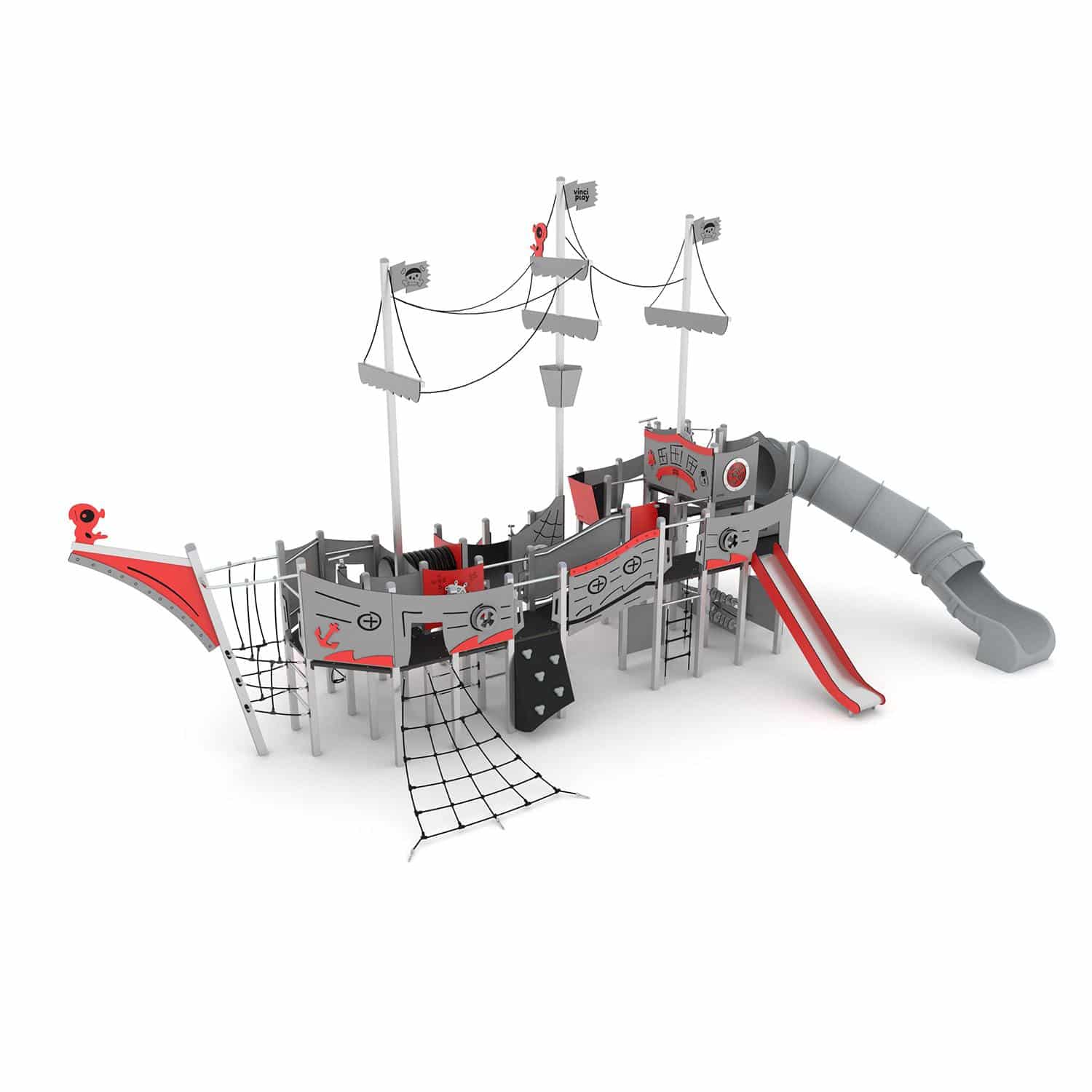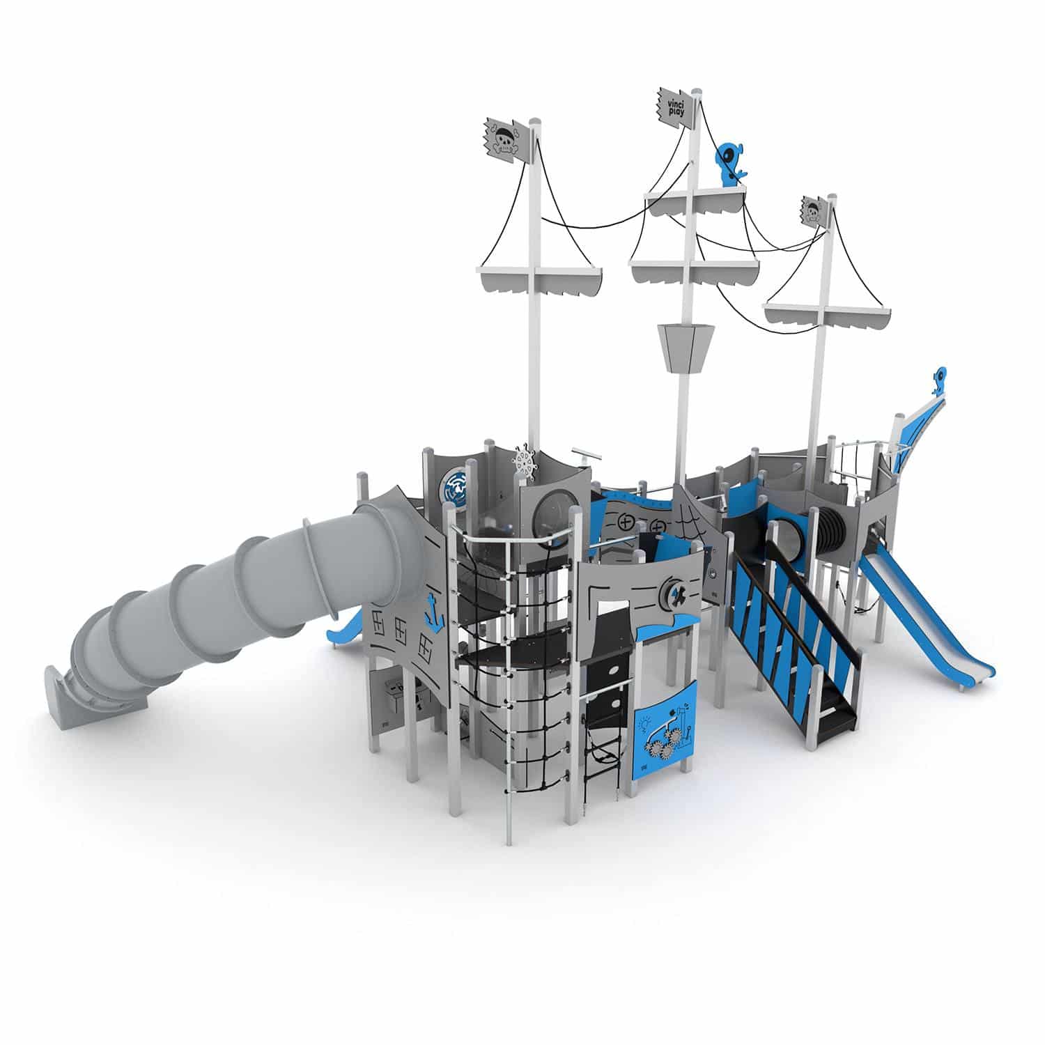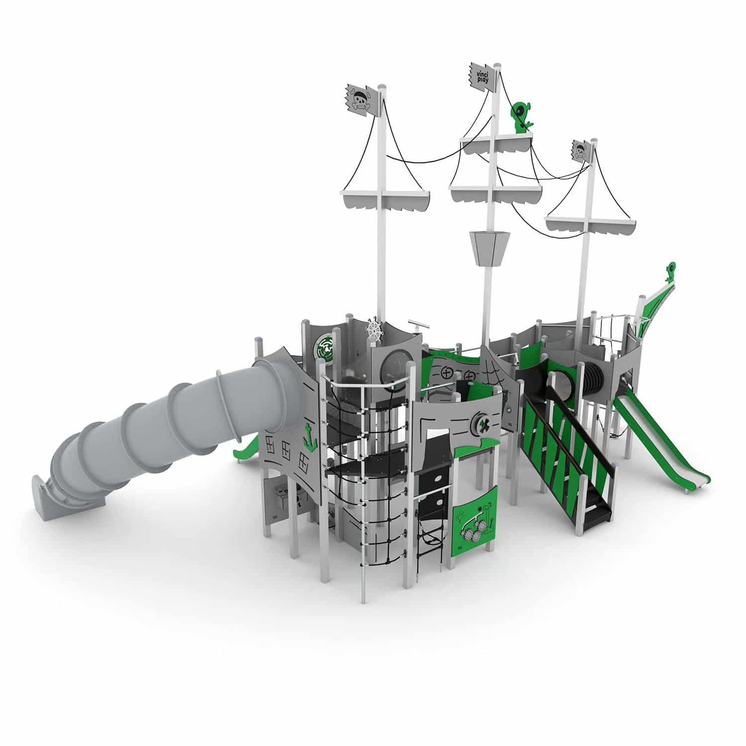 Speelschip driemaster met buisglijbaan