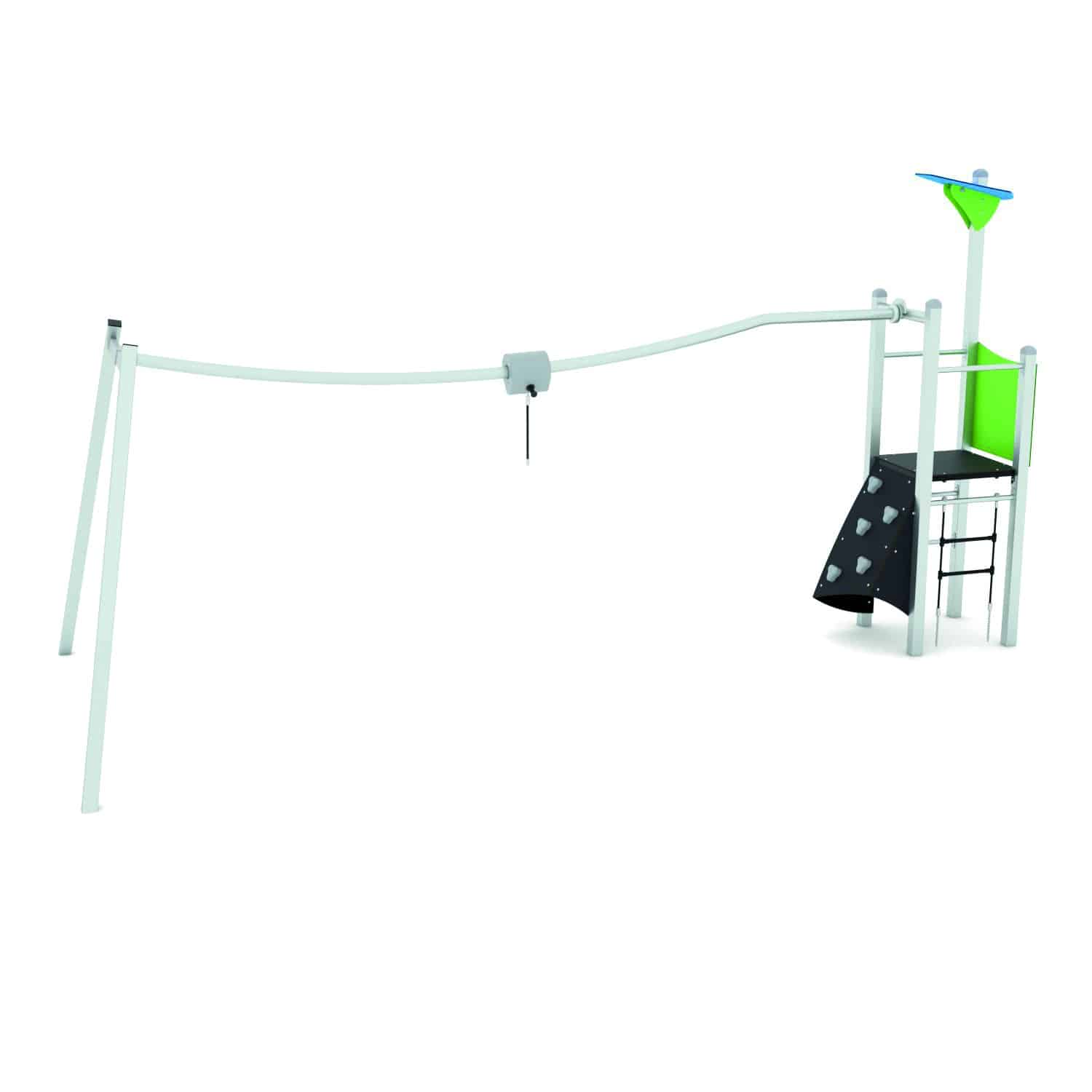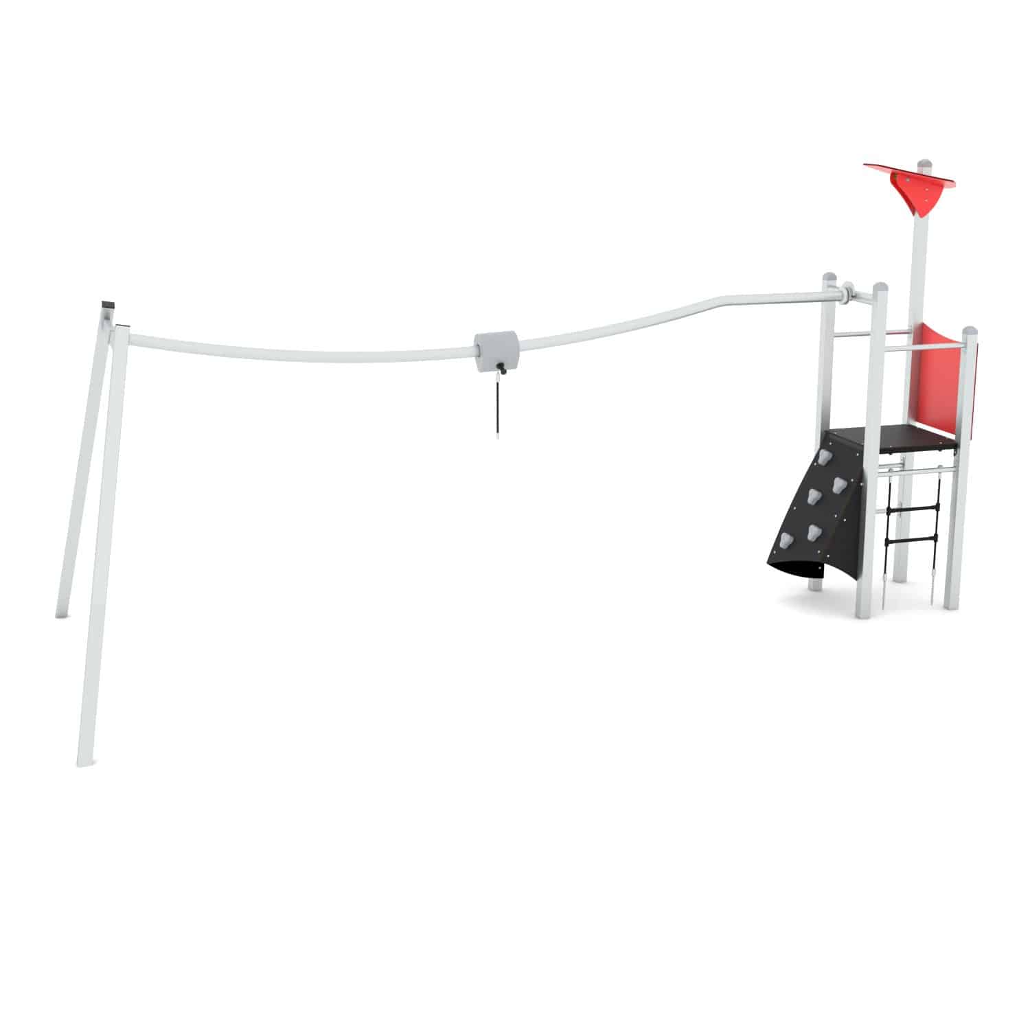 Roetsch vanaf het platform naar de andere kant terwijl je je aan de handgrepen vasthoudt. Je moet dus flink je best doen om te blijven hangen en eventueel je met je benen weer af te zetten om weer bij het platform te komen.