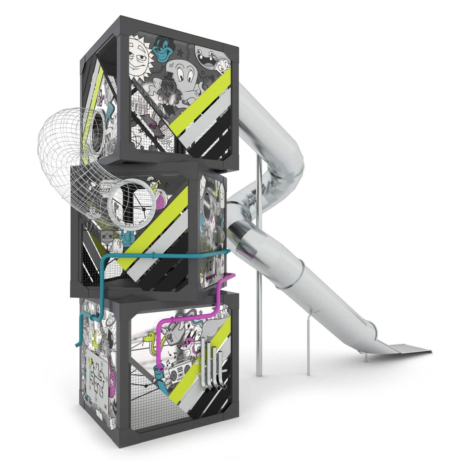 De QUBIX-serie zijn geometrische constructies gevuld met activiteit elementen. Hun moderne ontwerp past perfect in stedelijke ruimtes en biedt kinderen en tieners een geweldige plek om hun motorische coördinatie te ontwikkelen. Interessante grafisch en symmetrische vormen van staalconstructies zullen kinderen en verzorgers in verrukking brengen.