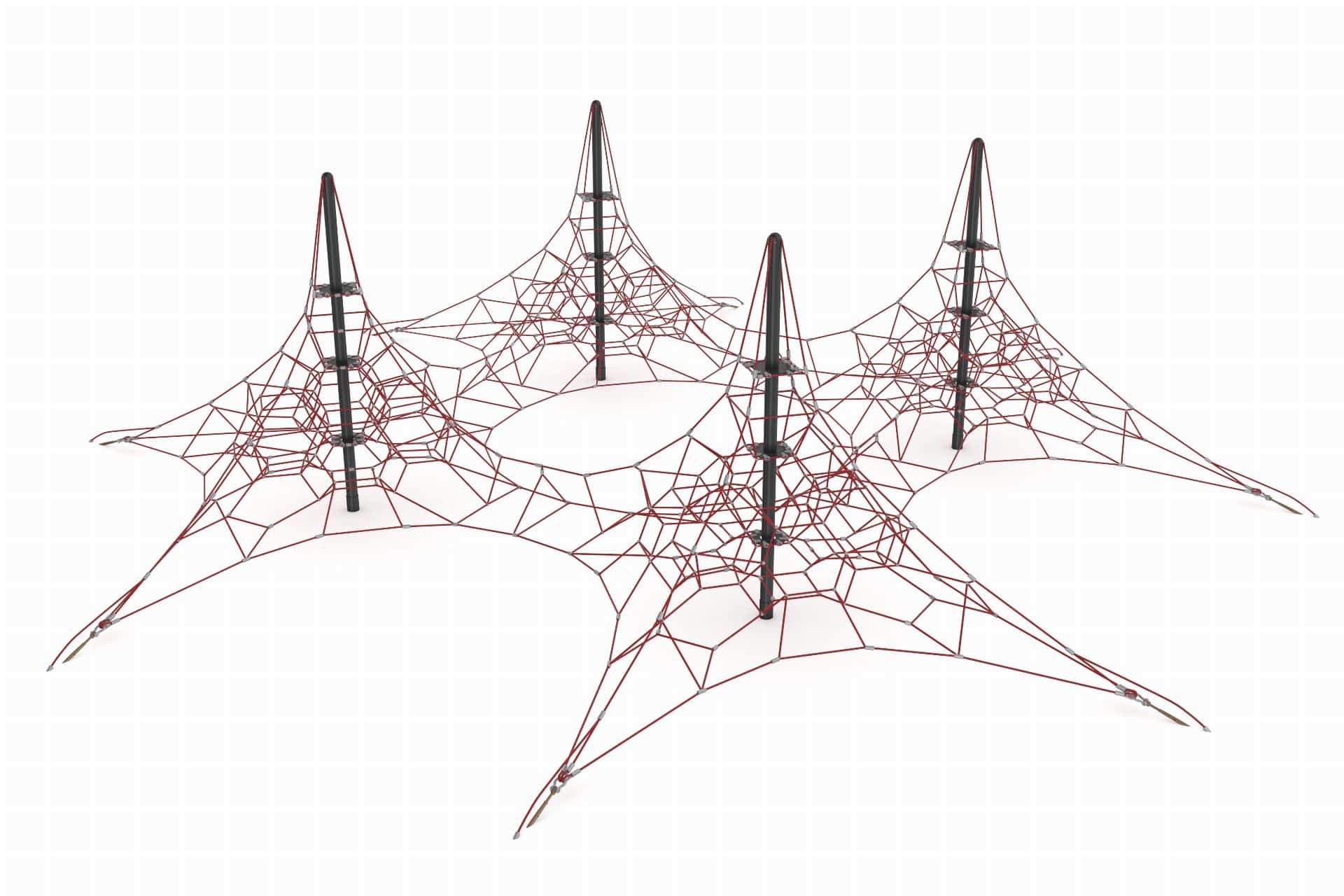 Binnen de 3D-netstructuren wordt staalversterkt Hercules touw verwerkt dat in verschillende kleuren leverbaar is. Maatwerk is mogelijk. Het biedt kinderen de uitdagende spanning van het beklimmen van touwen vanaf de basis tot de top, waarbij fysieke activiteit en spel op een dynamische manier samenkomen.