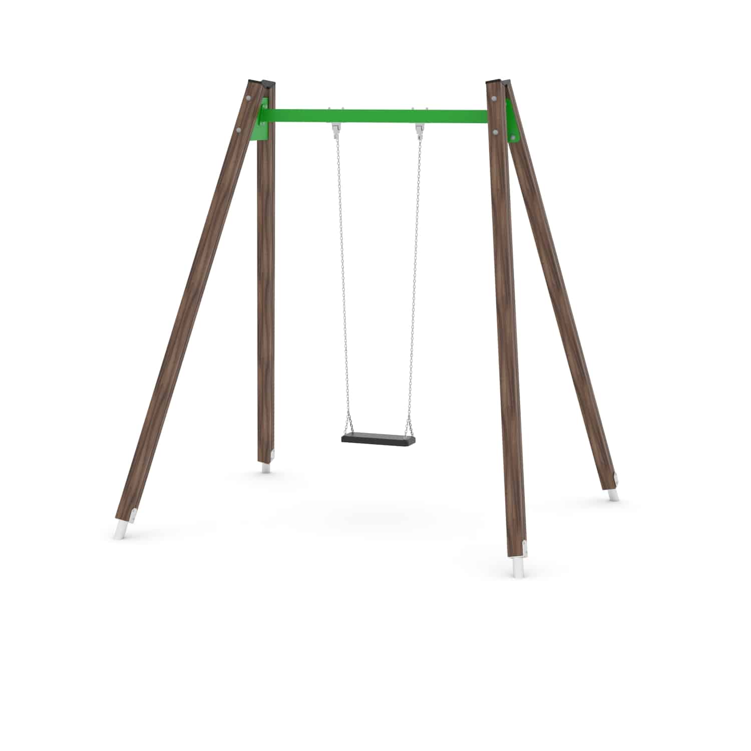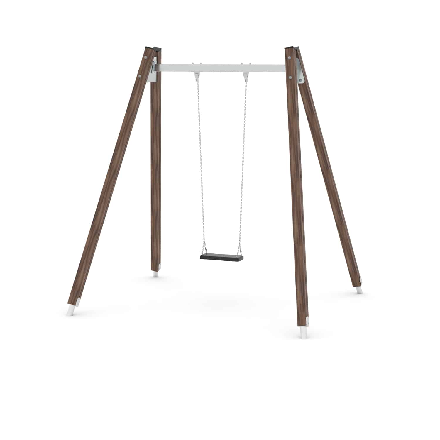 Strak vormgegeven enkele schommel waarbij optioneel voor een ander zitje gekozen kan worden.