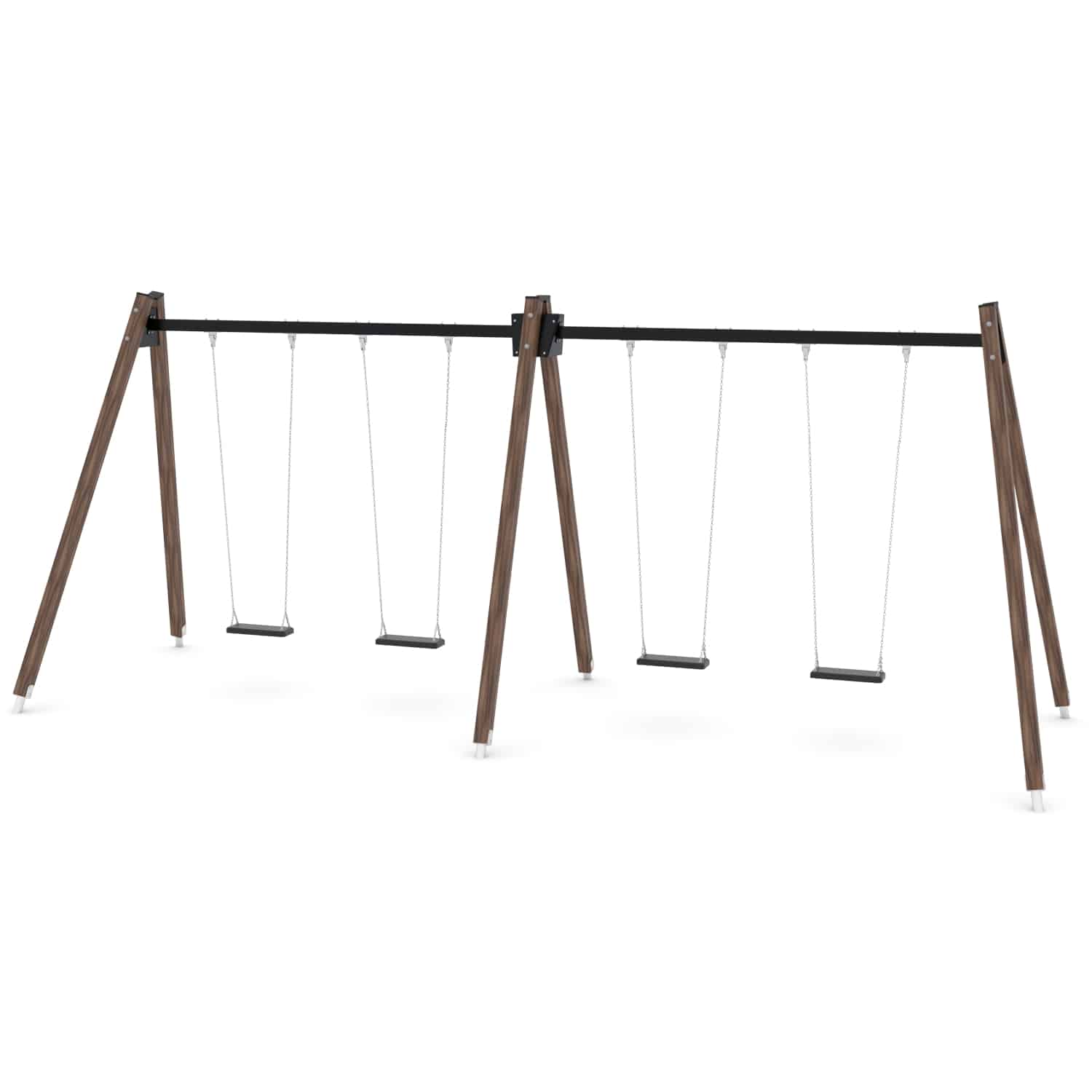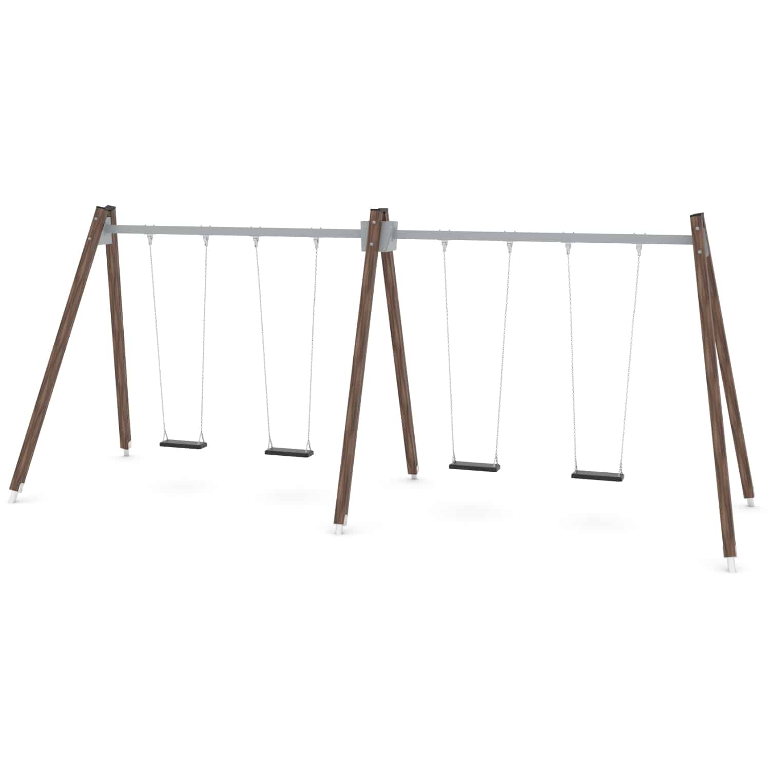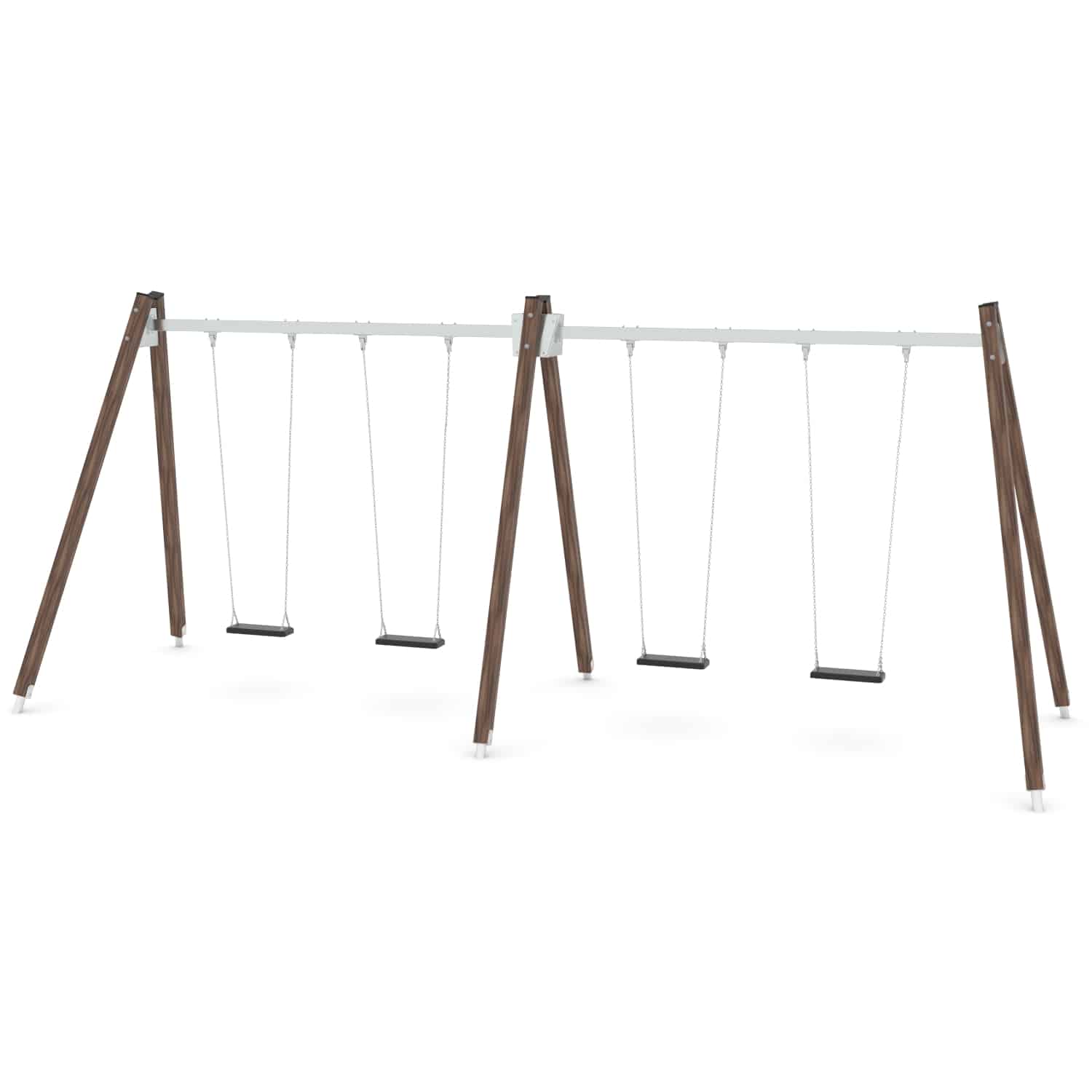 Strak vormgegeven viervoudige schommel waarbij optioneel voor andere zitjes gekozen kan worden.