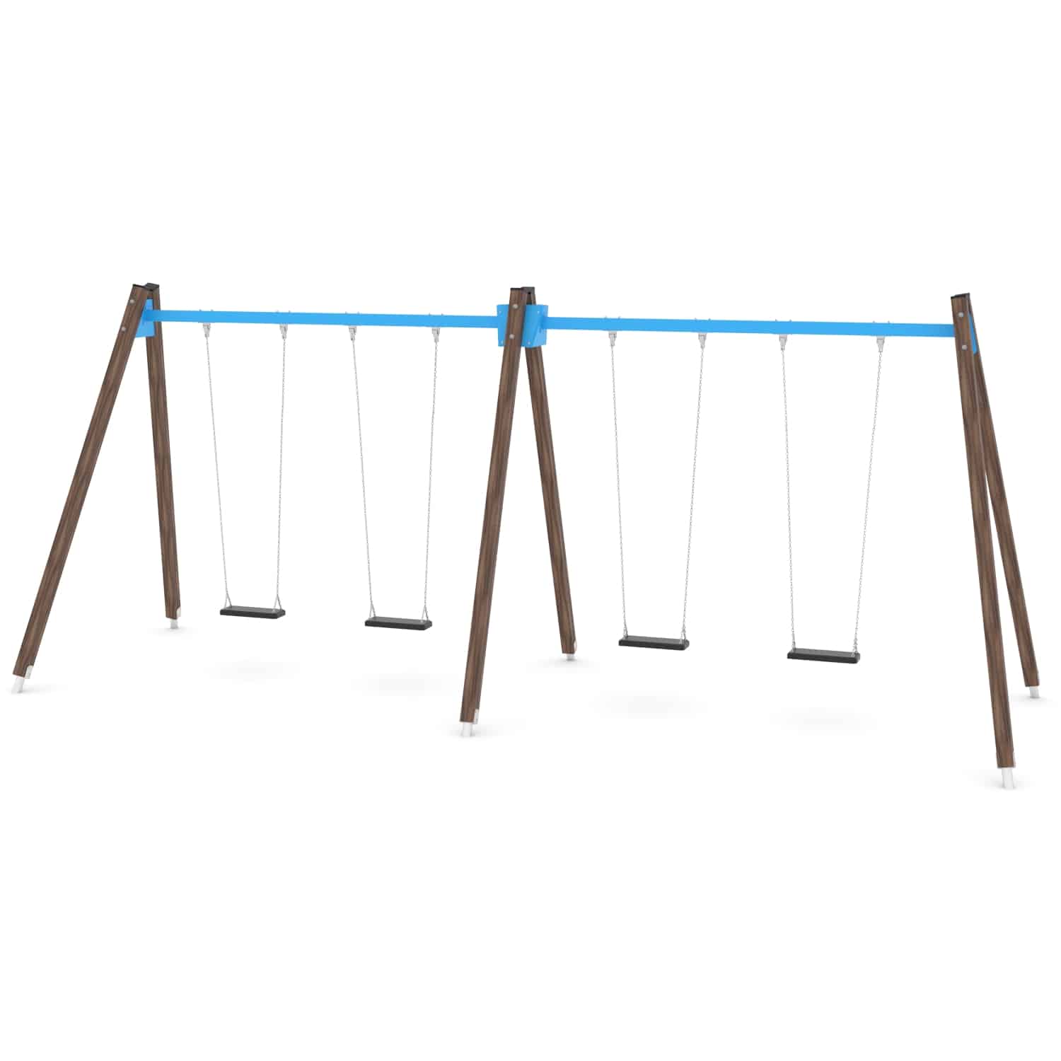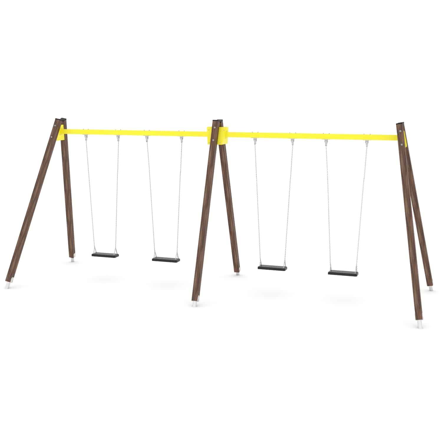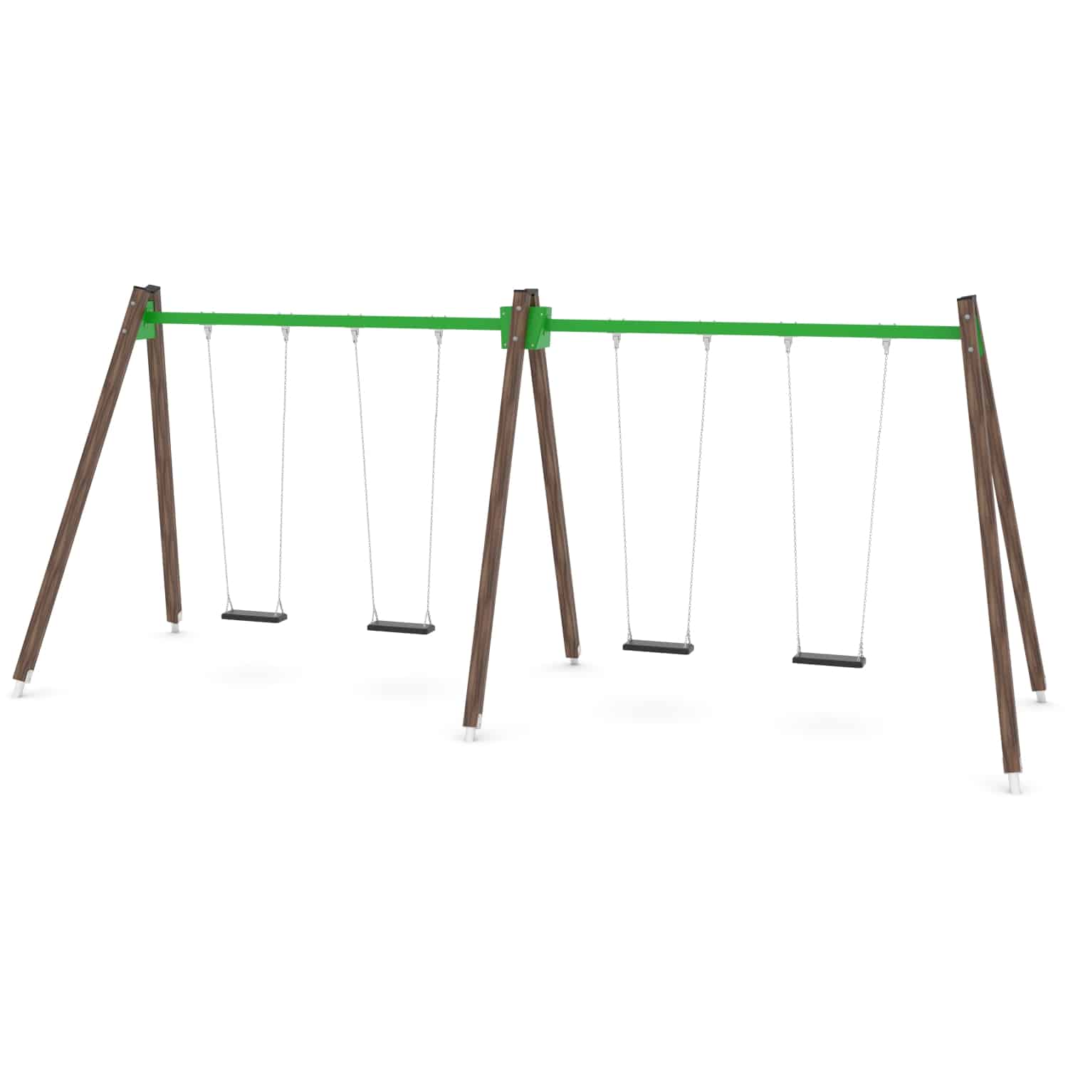 Strak vormgegeven viervoudige schommel waarbij optioneel voor andere zitjes gekozen kan worden.