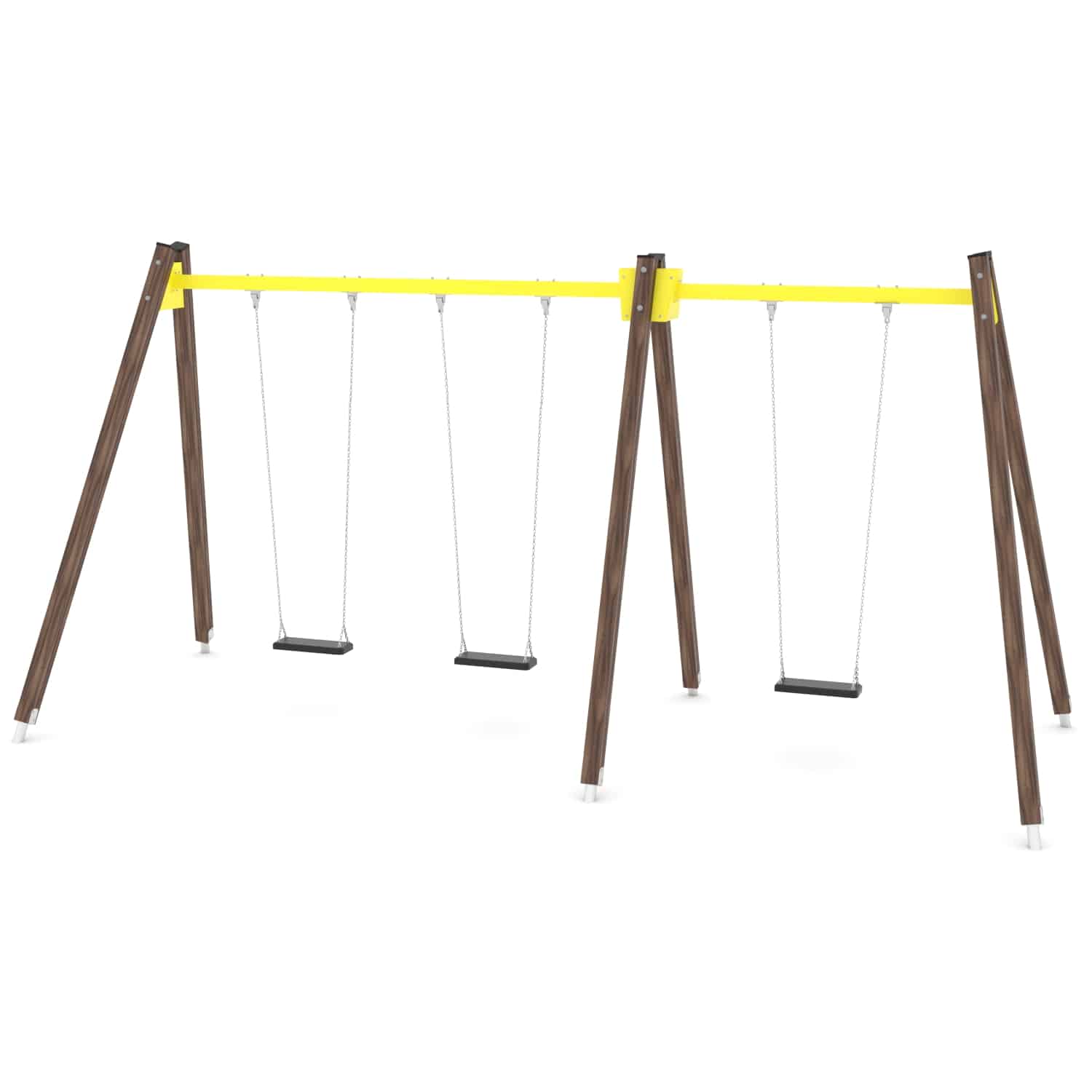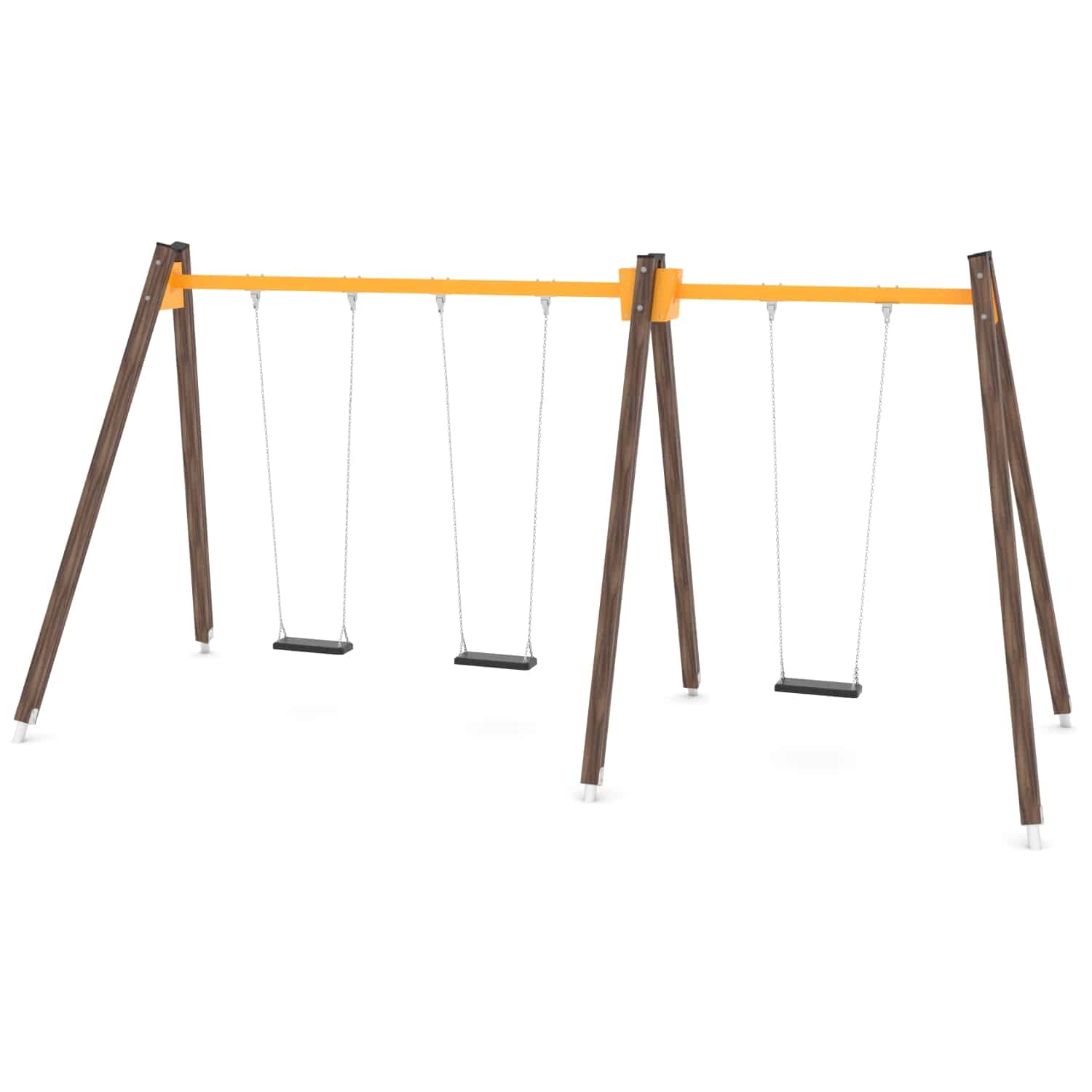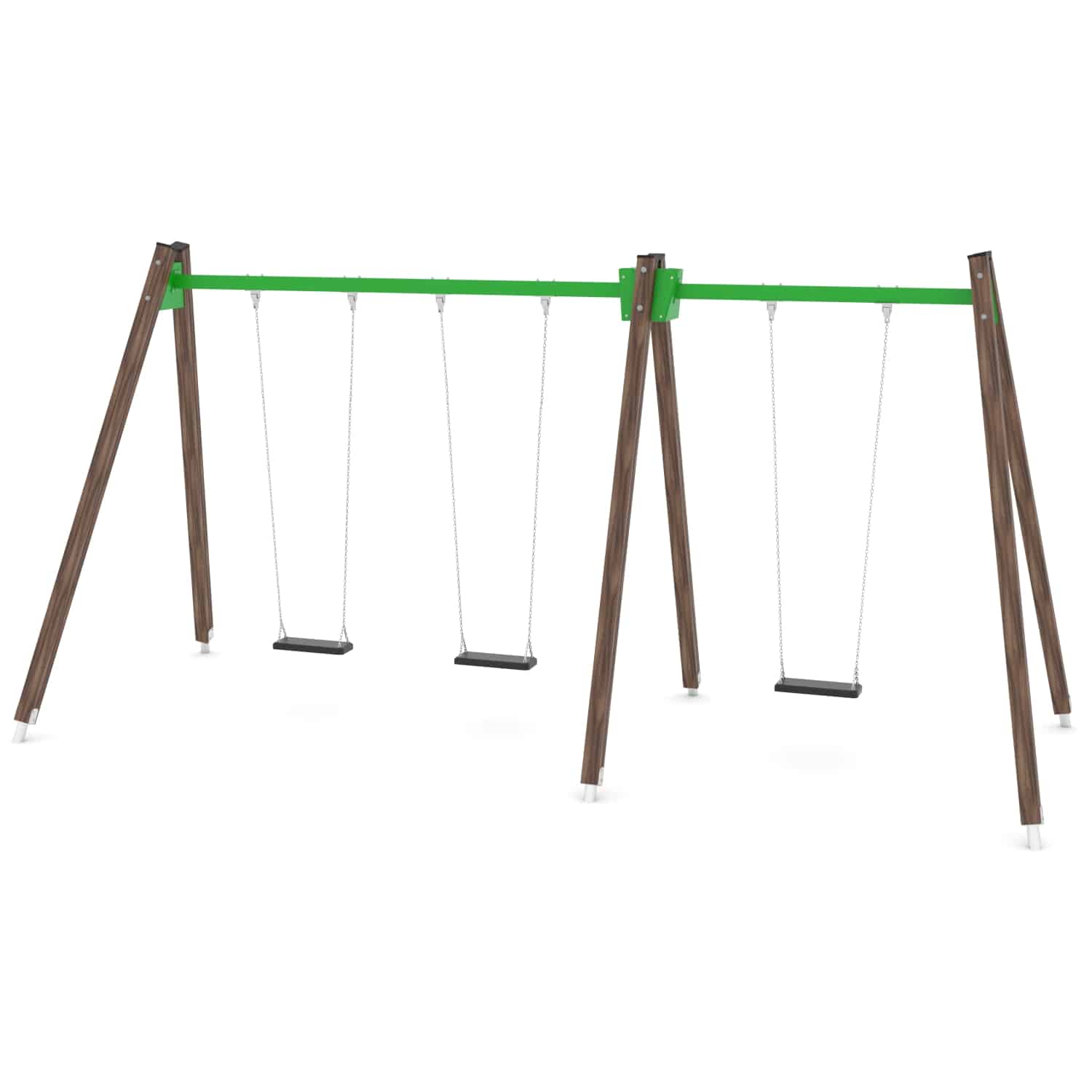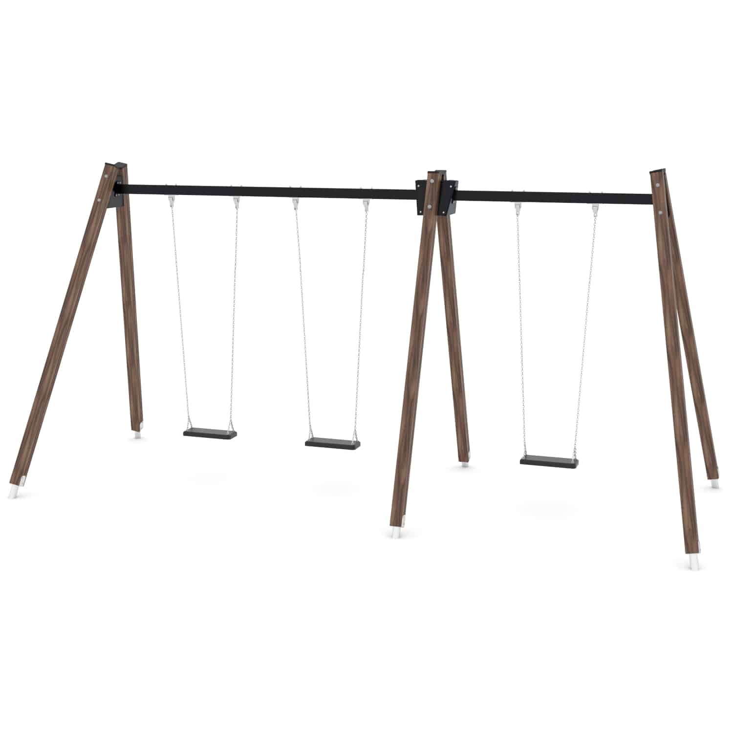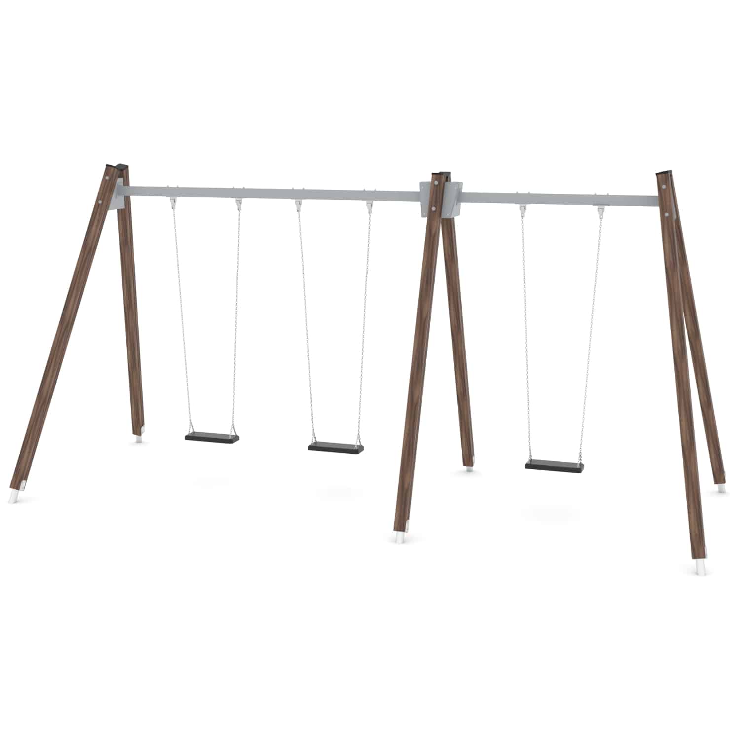 Strak vormgegeven Drievoudige schommel waarbij optioneel voor andere zitjes gekozen kan worden.