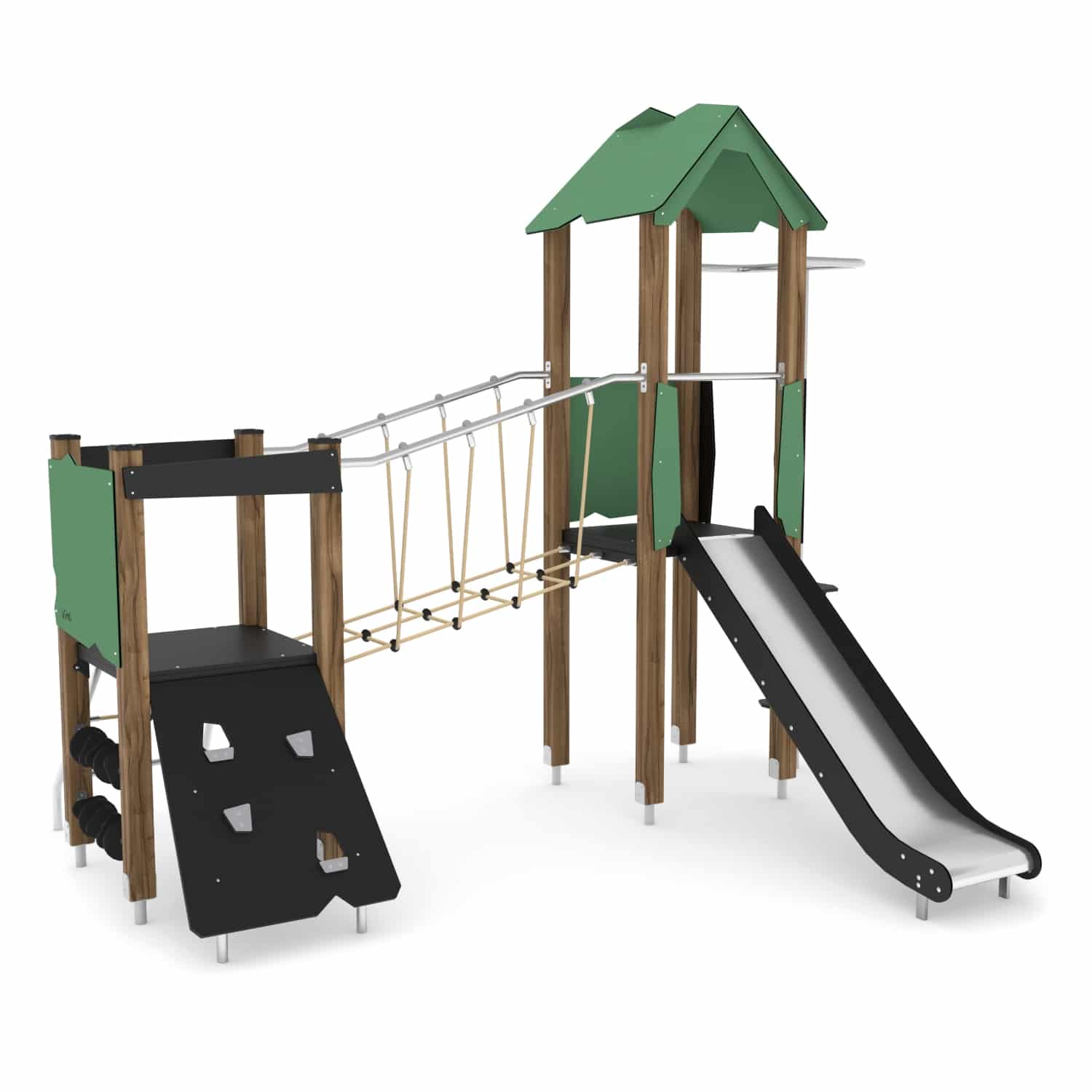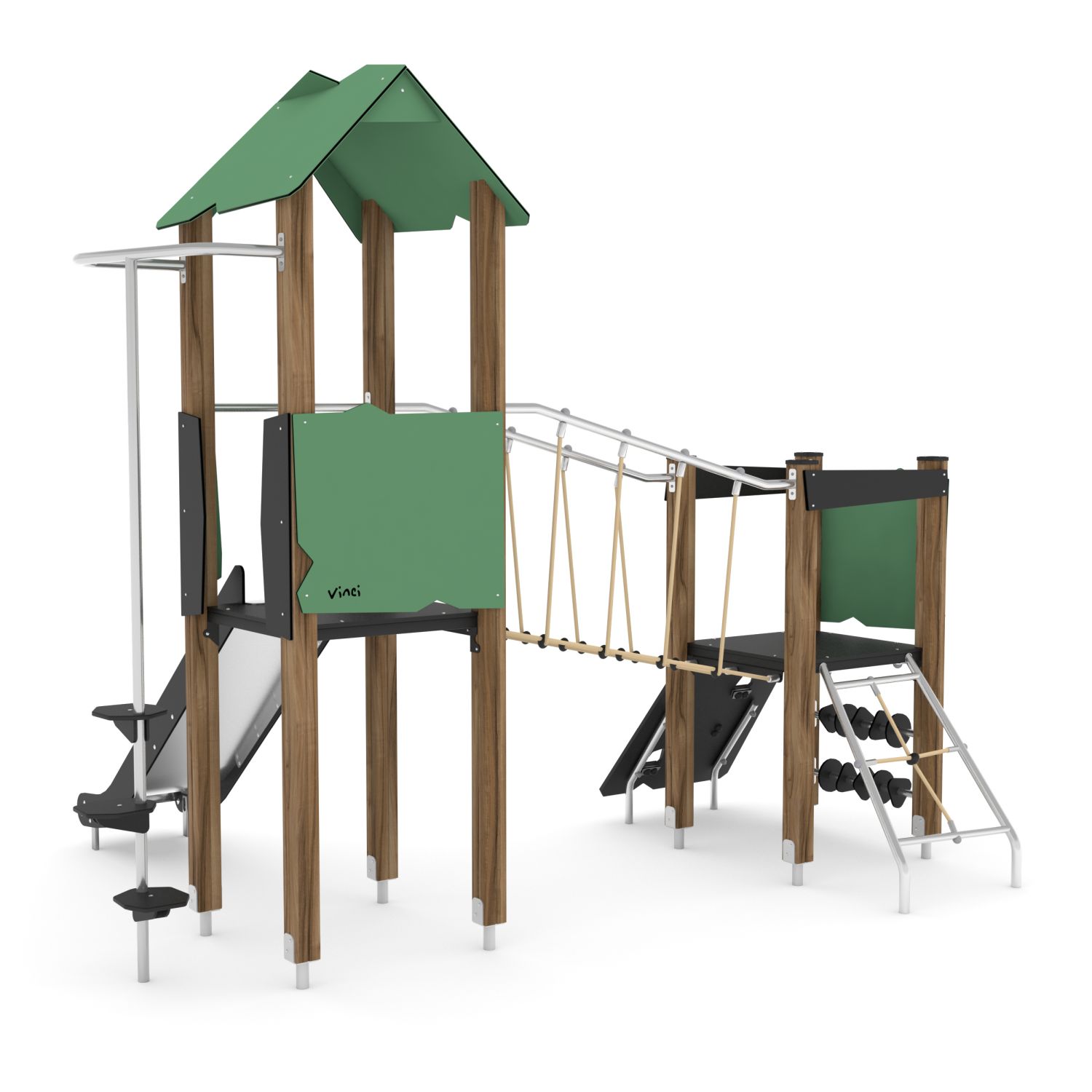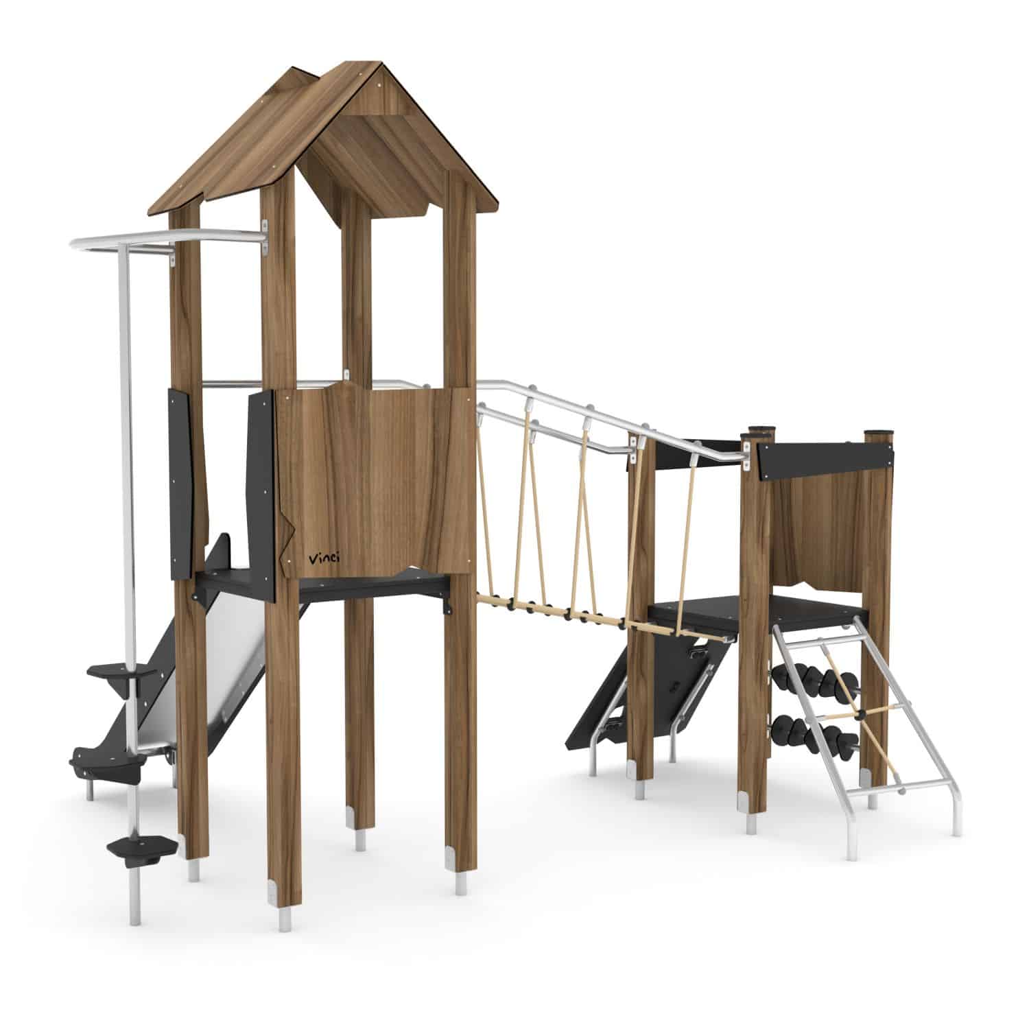 De Wooden-serie is voor zowel jongere als oudere kinderen een eindeloze bron van fantasie en inspiratie waar ze veel plezier aan hebben. Het milieuvriendelijke hout in de WOODEN series stimuleert de uitgebreide fysieke ontwikkeling en maakt het ook mogelijk dat grotere groepen kinderen samen kunnen spelen. Hierdoor leren kinderen relaties ontwikkelen met anderen en hoe ze in een team samen kunnen werken. Verschillende educatieve panelen die de zintuigen prikkelen, gecombineerd met bewegende onderdelen zorgen voor veel plezier bij de kinderen en hebben op hen een grote aantrekkingskracht.