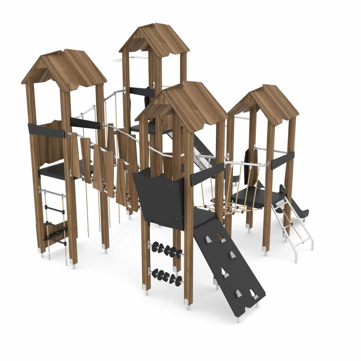 De Wooden-serie is voor zowel jongere als oudere kinderen een eindeloze bron van fantasie en inspiratie waar ze veel plezier aan hebben. Het milieuvriendelijke hout in de WOODEN series stimuleert de uitgebreide fysieke ontwikkeling en maakt het ook mogelijk dat grotere groepen kinderen samen kunnen spelen. Hierdoor leren kinderen relaties ontwikkelen met anderen en hoe ze in een team samen kunnen werken. Verschillende educatieve panelen die de zintuigen prikkelen, gecombineerd met bewegende onderdelen zorgen voor veel plezier bij de kinderen en hebben op hen een grote aantrekkingskracht.