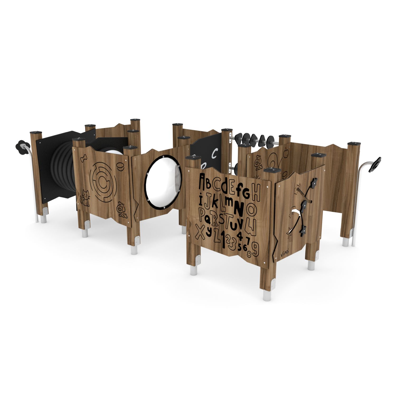 De Wooden-serie is voor zowel jongere als oudere kinderen een eindeloze bron van fantasie en inspiratie waar ze veel plezier aan hebben. Het milieuvriendelijke hout in de WOODEN series stimuleert de uitgebreide fysieke ontwikkeling en maakt het ook mogelijk dat grotere groepen kinderen samen kunnen spelen. Hierdoor leren kinderen relaties ontwikkelen met anderen en hoe ze in een team samen kunnen werken. Verschillende educatieve panelen die de zintuigen prikkelen, gecombineerd met bewegende onderdelen zorgen voor veel plezier bij de kinderen en hebben op hen een grote aantrekkingskracht.
