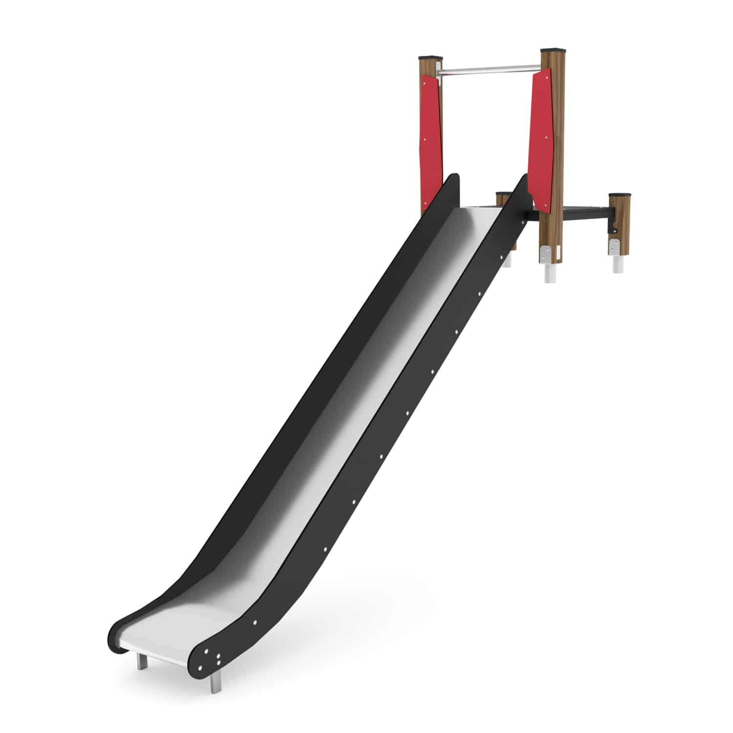 Glij van de heuvel af op de taludglijbaan. De glijbaan is uitgevoerd met een oersterk RVS glijgedeelte en kan in verschillende kleurcombinaties en afmetingen geleverd worden.