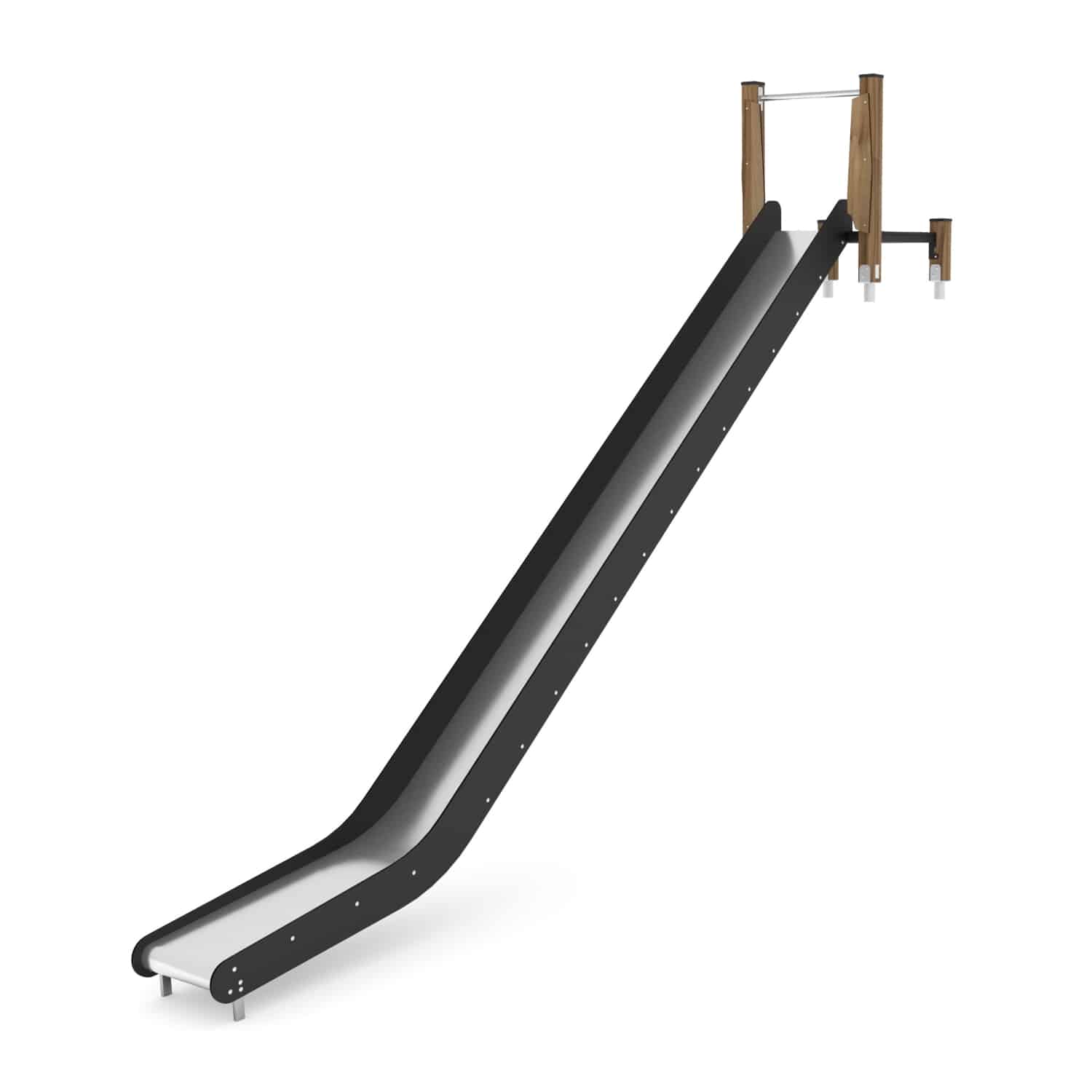 Glij van de heuvel af op de taludglijbaan. De glijbaan is uitgevoerd met een oersterk RVS glijgedeelte en kan in verschillende kleurcombinaties en afmetingen geleverd worden.