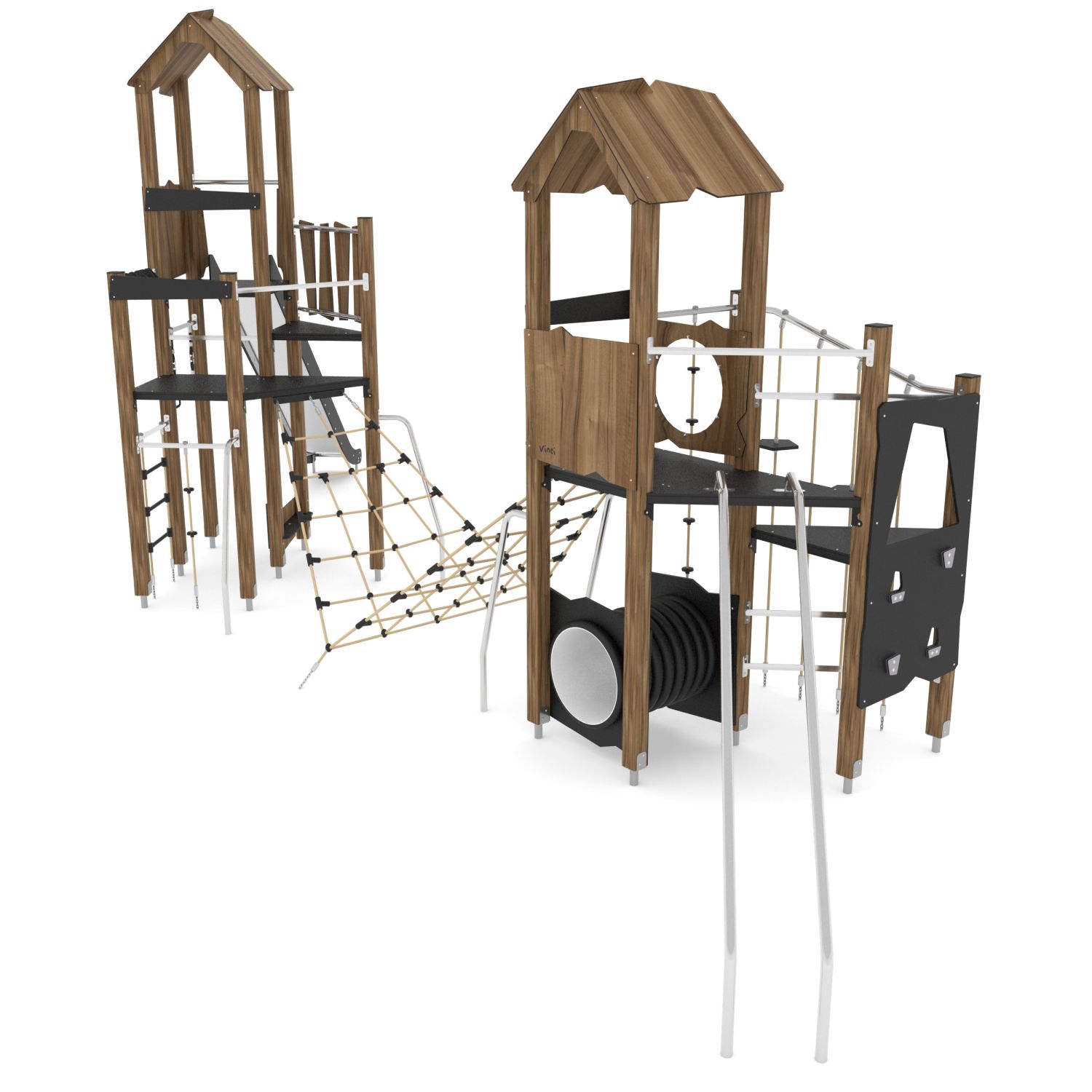 De Wooden-serie is voor zowel jongere als oudere kinderen een eindeloze bron van fantasie en inspiratie waar ze veel plezier aan hebben. Het milieuvriendelijke hout in de WOODEN series stimuleert de uitgebreide fysieke ontwikkeling en maakt het ook mogelijk dat grotere groepen kinderen samen kunnen spelen. Hierdoor leren kinderen relaties ontwikkelen met anderen en hoe ze in een team samen kunnen werken. Verschillende educatieve panelen die de zintuigen prikkelen, gecombineerd met bewegende onderdelen zorgen voor veel plezier bij de kinderen en hebben op hen een grote aantrekkingskracht.