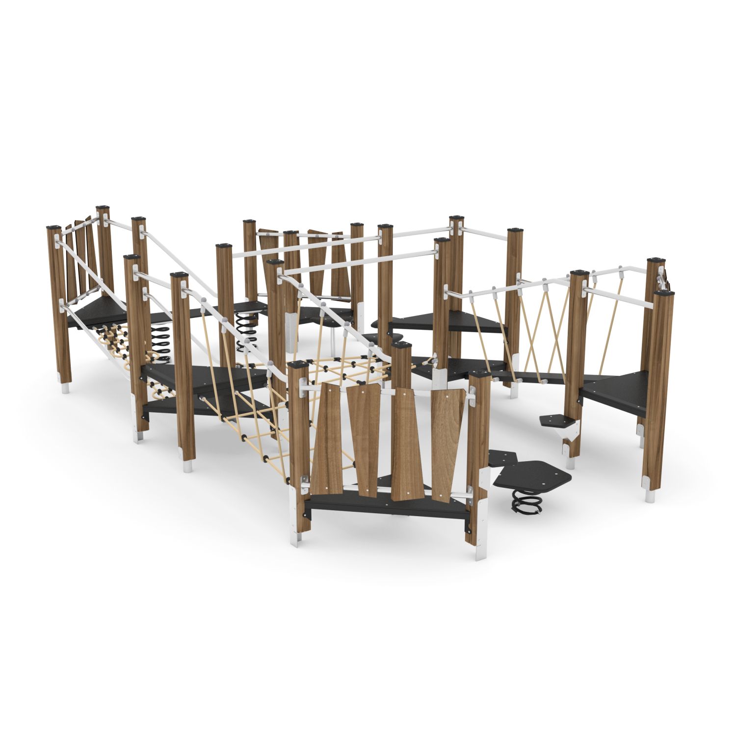 Een enorm divers speelparcours met de nodige motorische uitdaging voor kinderen. Bestaande uit diverse evenwichtsbruggen, stapplateaus en wiebelplaten met een veer eronder. Een ware hit voor de onderbouw op het schoolplein!