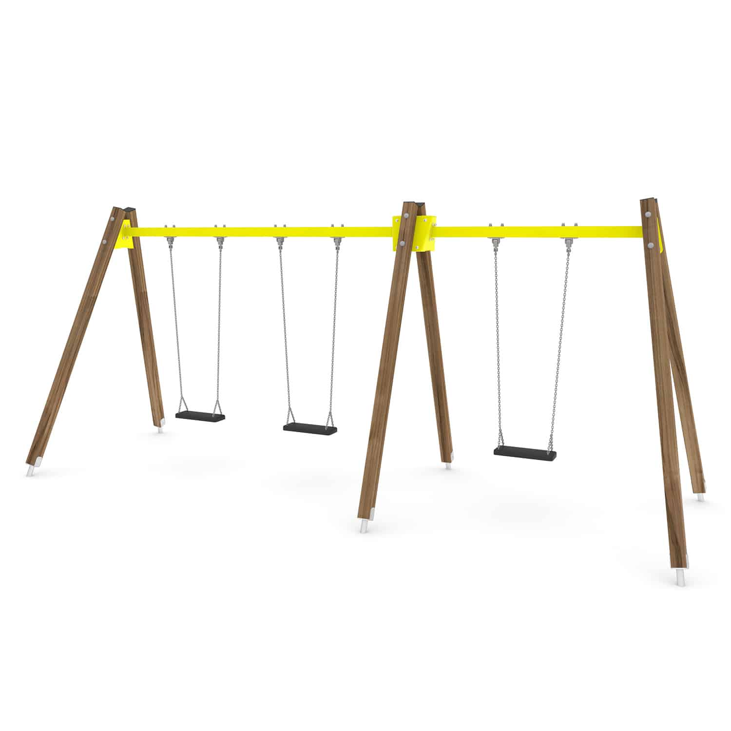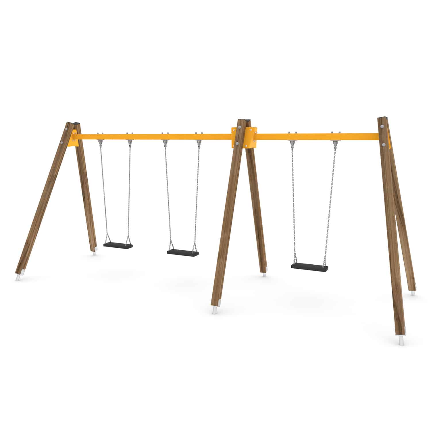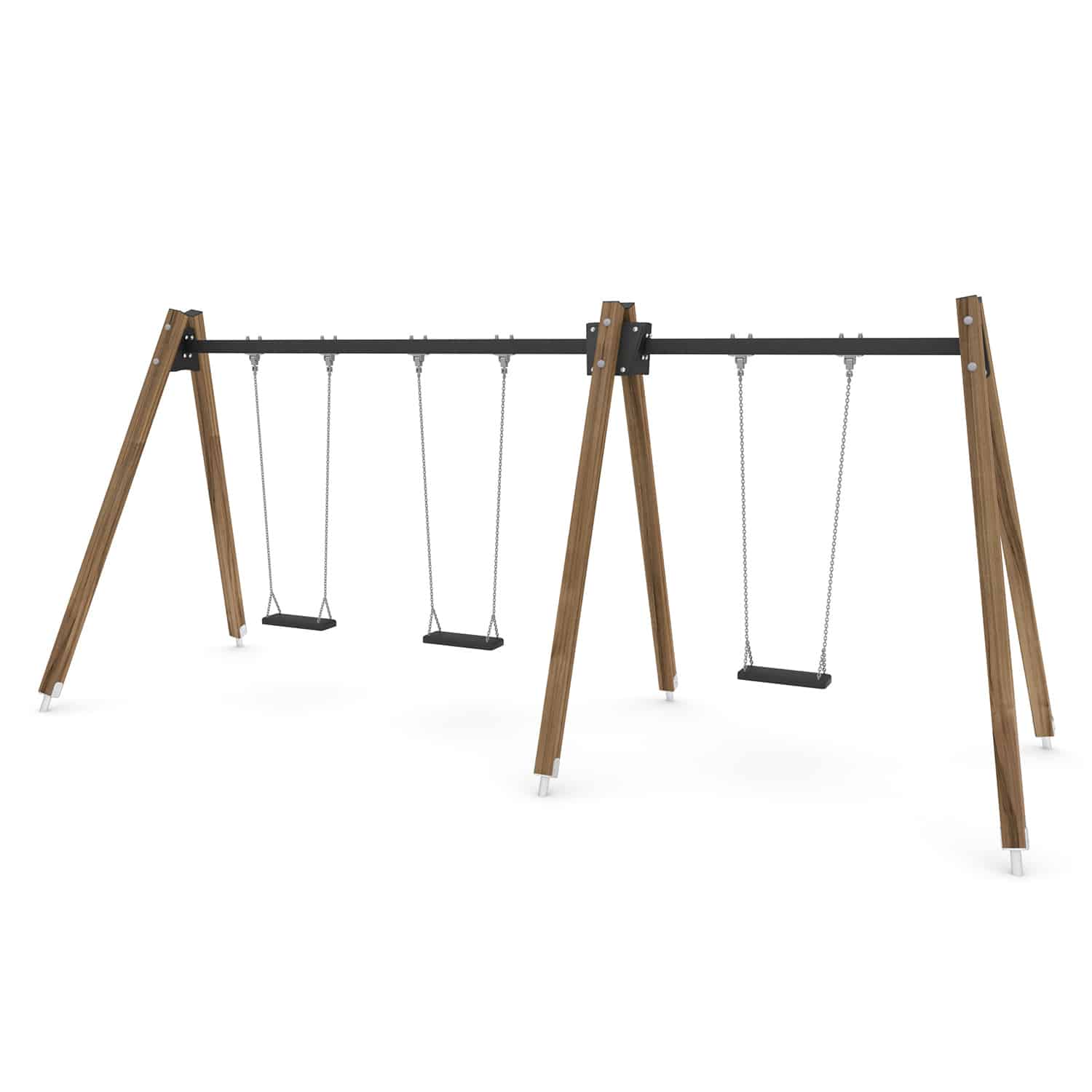 Strak vormgegeven Drievoudige schommel waarbij optioneel voor andere zitjes gekozen kan worden.