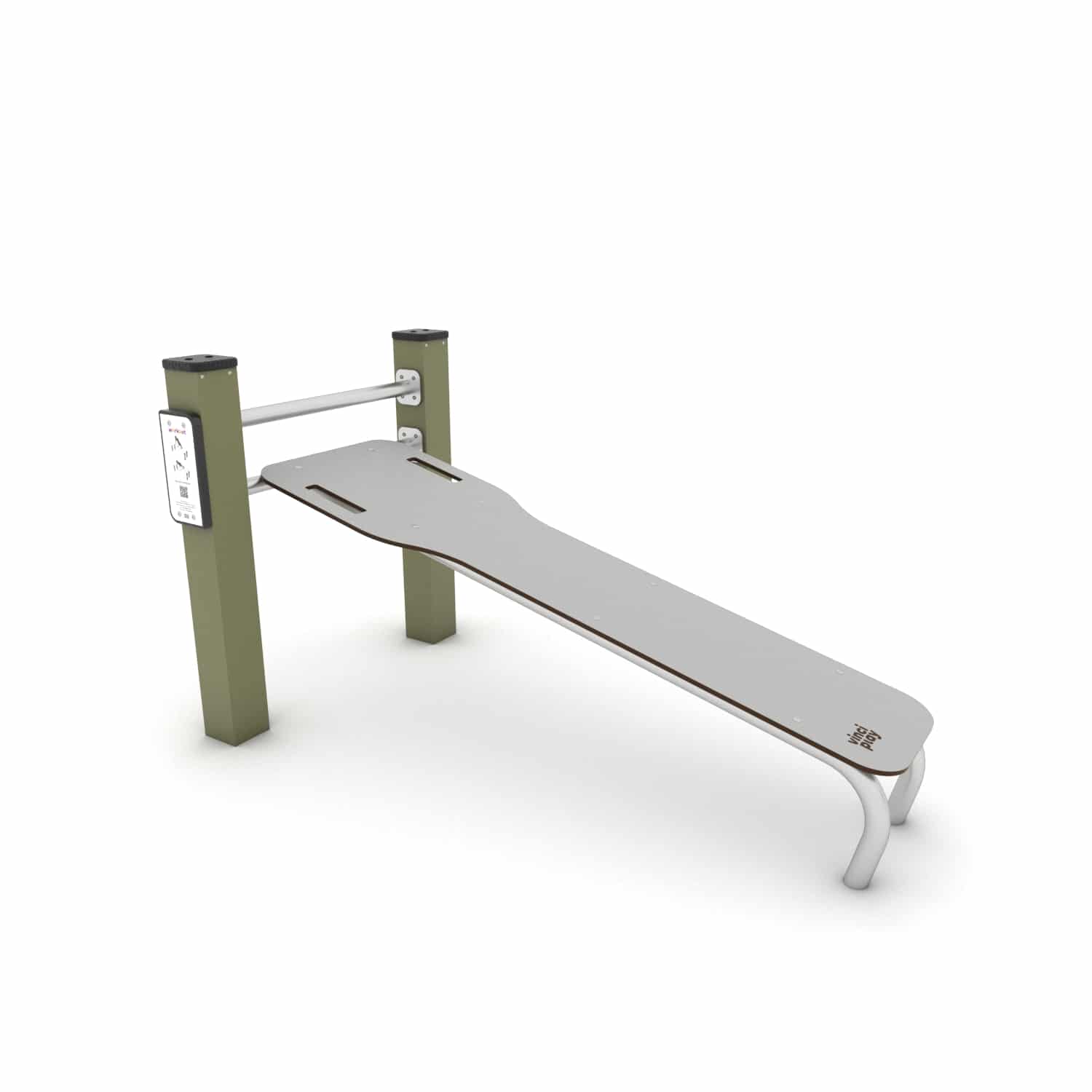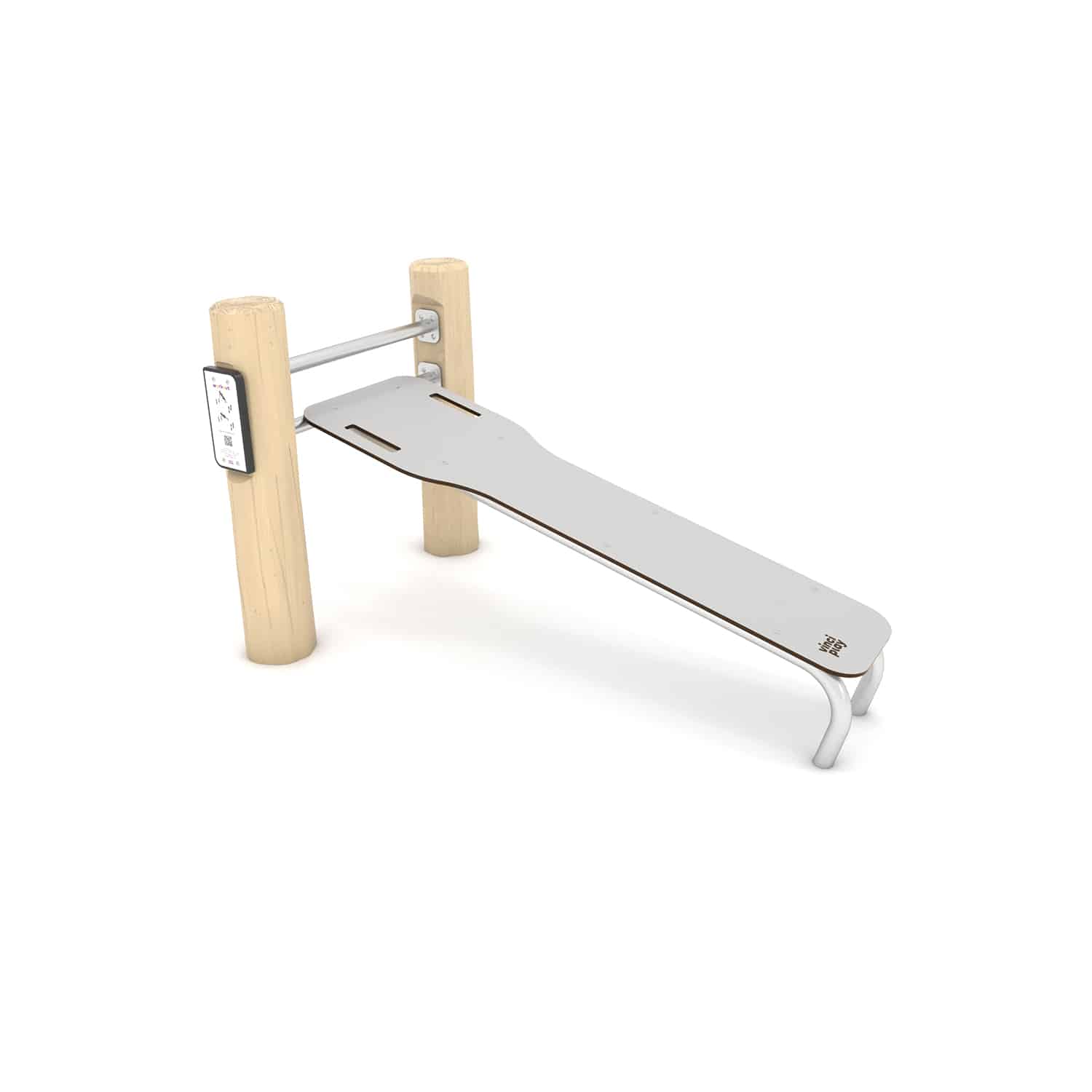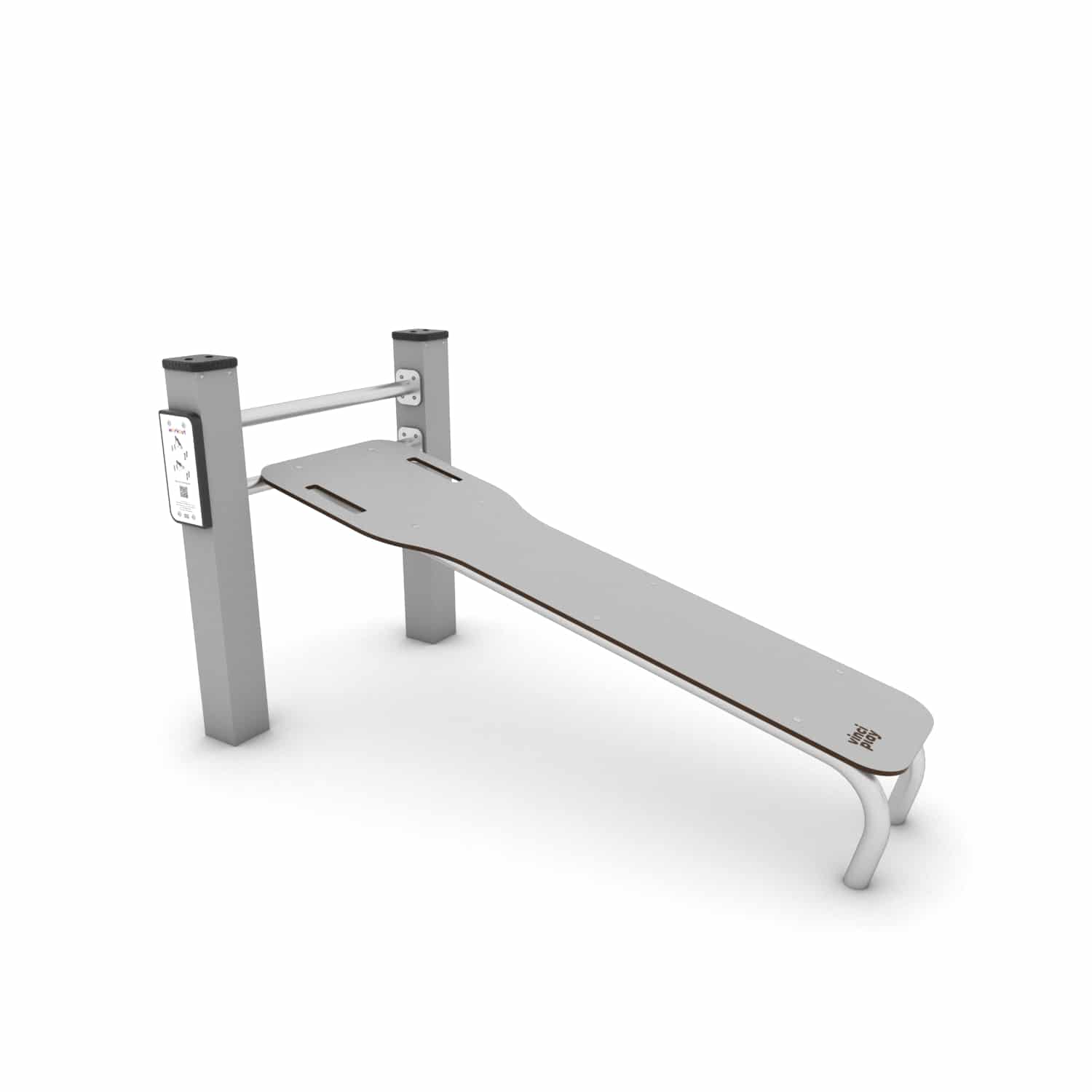 Deze schuine Sit-up bench voor intensieve rug- en buikspieroefeningen. De hoek van de rugleuning maakt van deze bench een uitdagend element om o.a. de lage rug te trainen. Outdoor trainen is in opmars en daarvoor zijn meestal geen geavanceerde sporttoestellen nodig. Omdat samensport leuker en leerzamer is creëer je met ons Workout assortiment de ideale outdoor gym op maar een paar vierkantemeter met oneindig veel mogelijkheden. De transparante constructie heeft een robuust stalen frame dat is verzinikt en voorzien van een hoogwaardige poedercoating. Train met je eigen lichaamsgewicht, verleg je grenzen en maak gebruik van de online instructies die via een QR code beschikbaar zijn.