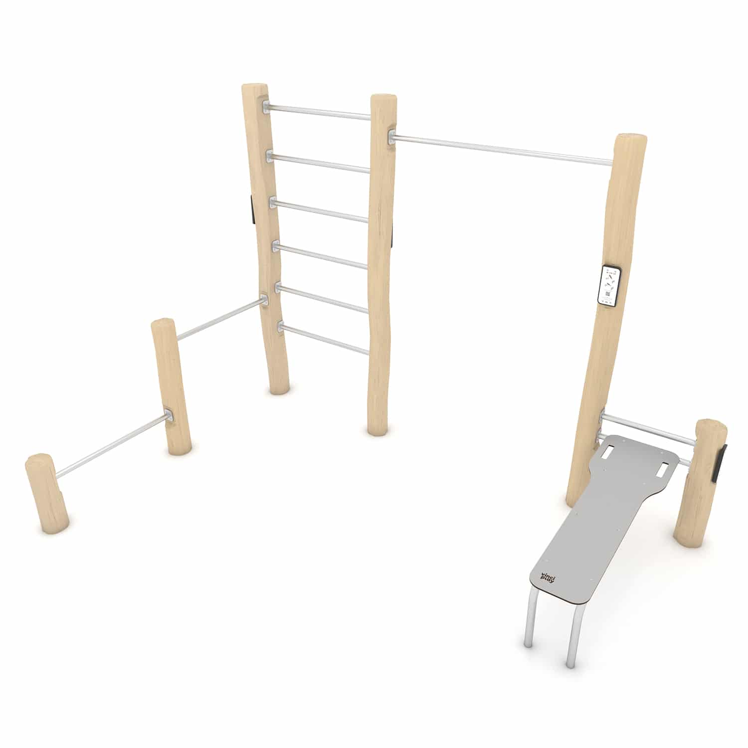 Dit Calisthenics circuit bestaat uit meerdere elementen en is daarmee een fantastische workout combinatie voor de buitenruimte. Outdoor trainen is in opmars en daarvoor zijn meestal geen geavanceerde sporttoestellen nodig. Omdat samensport leuker en leerzamer is creëer je met ons Workout assortiment de ideale outdoor gym op maar een paar vierkantemeter met oneindig veel mogelijkheden. De transparante constructie heeft een enorm robuust frame dat geheel uit RVS is vervaardigd. Train met je eigen lichaamsgewicht, verleg je grenzen en maak gebruik van de online instructies die via een QR code beschikbaar zijn.