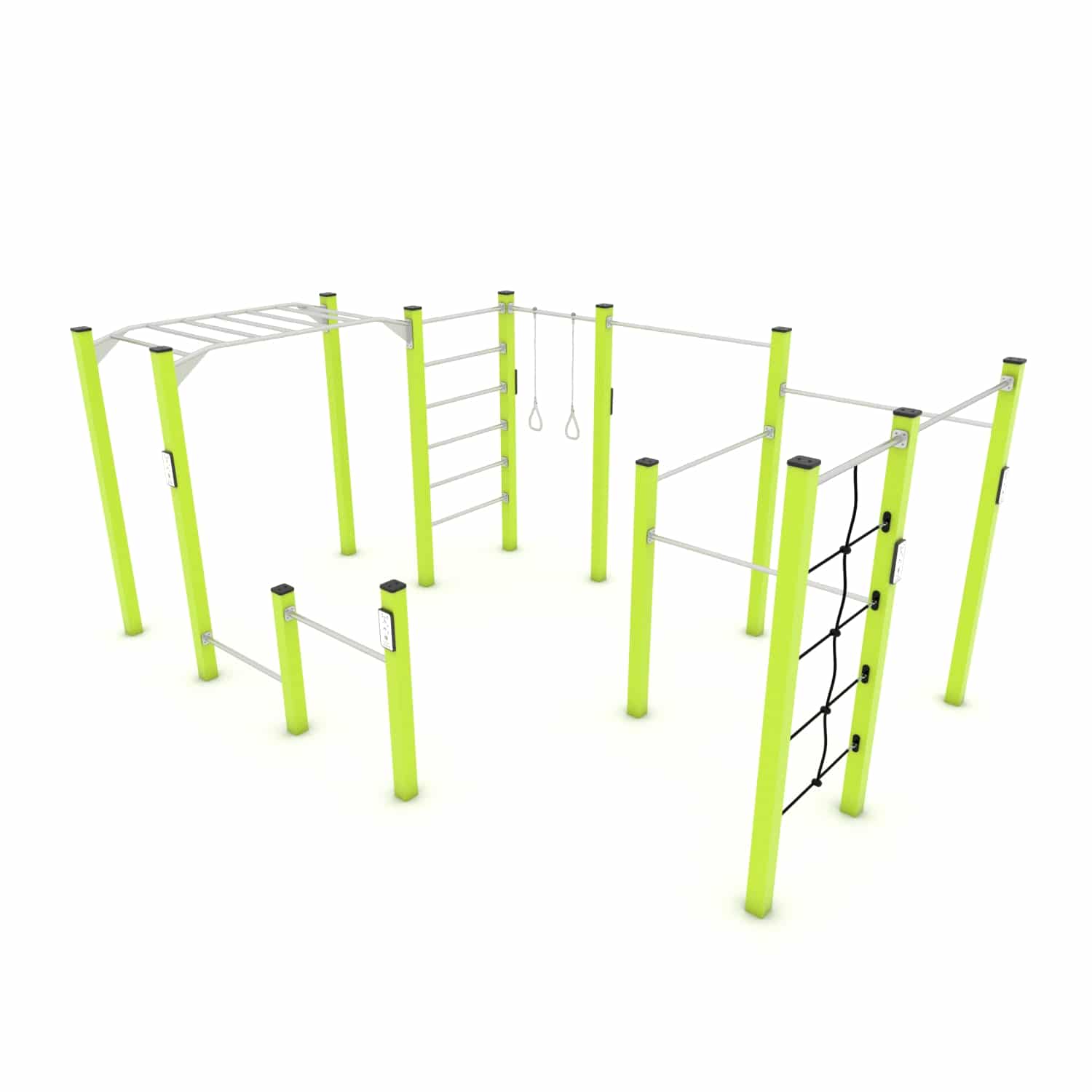 Dit Calisthenics circuit bestaat uit meerdere elementen en is daarmee een fantastische workout combinatie voor de buitenruimte. Outdoor trainen is in opmars en daarvoor zijn meestal geen geavanceerde sporttoestellen nodig. Omdat samensport leuker en leerzamer is creëer je met ons Workout assortiment de ideale outdoor gym op maar een paar vierkantemeter met oneindig veel mogelijkheden. De transparante constructie heeft een robuust stalen frame dat is verzinkt en voorzien van een hoogwaardige poedercoating. Train met je eigen lichaamsgewicht, verleg je grenzen en maak gebruik van de online instructies die via een QR code beschikbaar zijn.