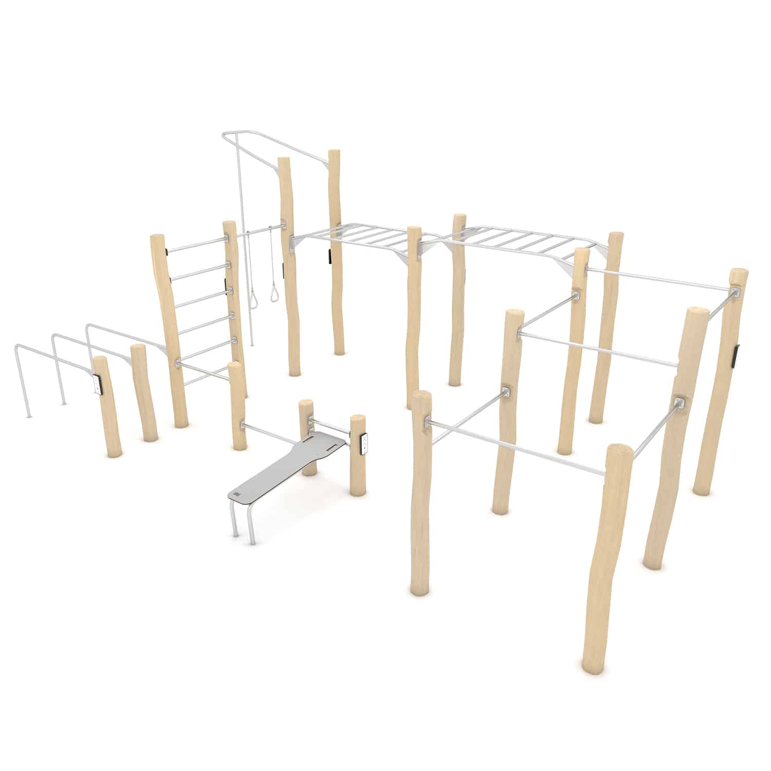 Dit Calisthenics circuit bestaat uit meerdere elementen en is daarmee een fantastische workout combinatie voor de buitenruimte. Outdoor trainen is in opmars en daarvoor zijn meestal geen geavanceerde sporttoestellen nodig. Omdat samensport leuker en leerzamer is creëer je met ons Workout assortiment de ideale outdoor gym op maar een paar vierkantemeter met oneindig veel mogelijkheden. De transparante constructie heeft een robuust stalen frame dat is verzinkt en voorzien van een hoogwaardige poedercoating. Train met je eigen lichaamsgewicht, verleg je grenzen en maak gebruik van de online instructies die via een QR code beschikbaar zijn.
